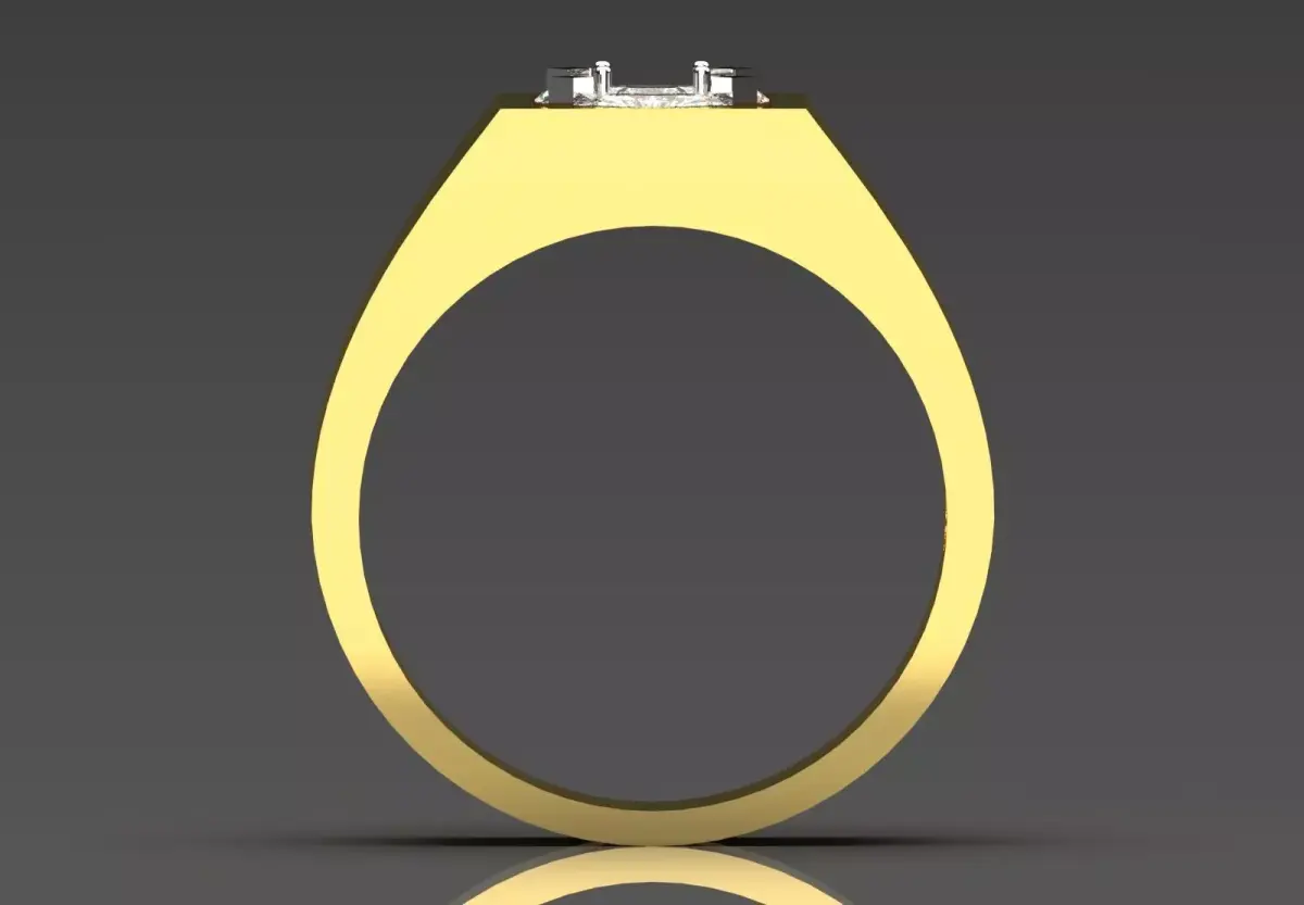 - Square Ring Top: The upper part of the ring is designed as a square block that showcases the round stone at its center.