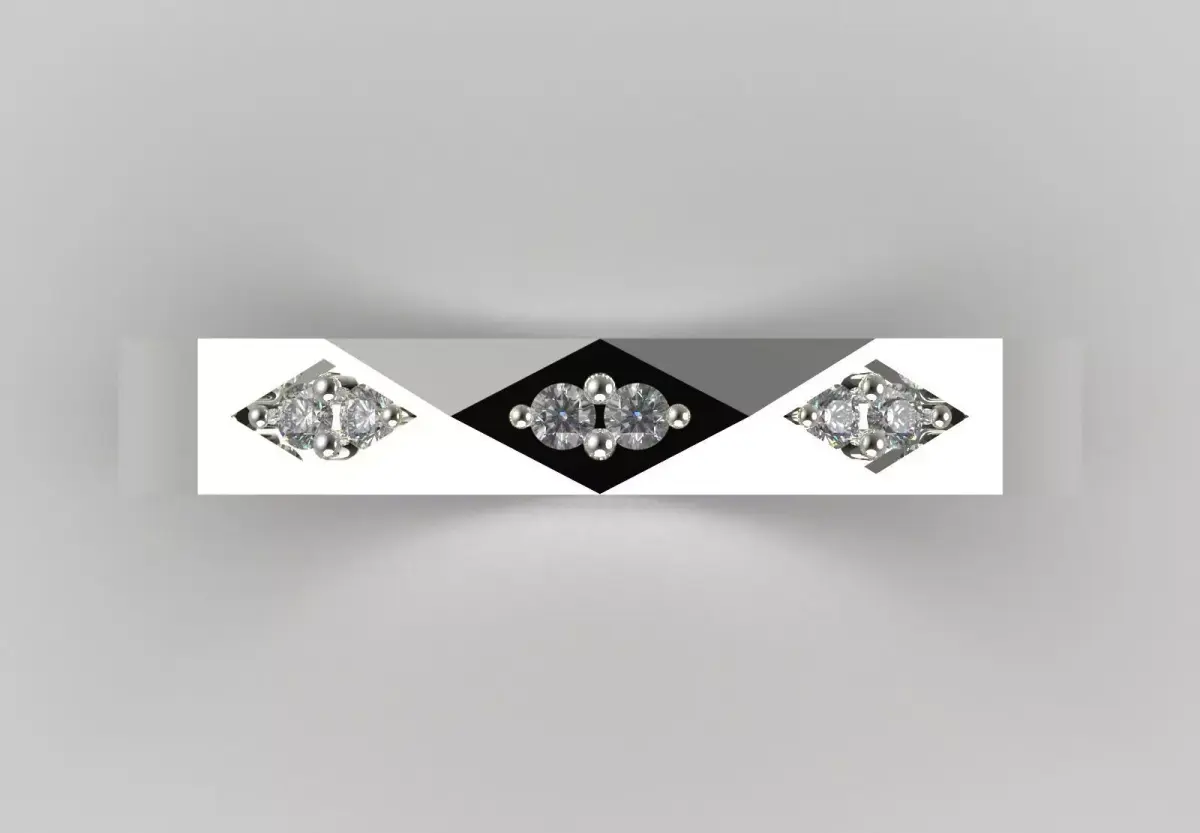 The technical design of this ring is highlighted by a Faceted outer surface, each of which is carefully shaped to reflect light in a dynamic way. Among these geometric surfaces, Round brilliant diamonds are placed in a delicate and modern way, their brilliance doubling the beauty of the geometric structure of the ring. Despite the bold appearance, the inner surface of the ring is designed to be completely smooth and comfortable, making it perfectly suitable for everyday use.