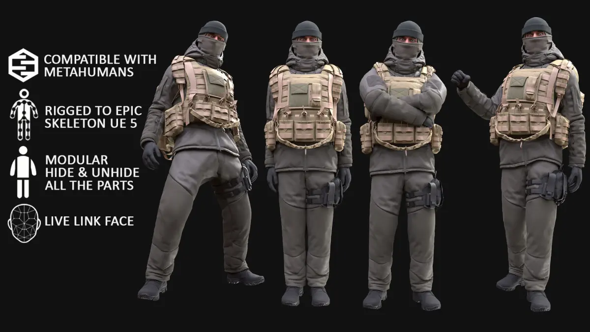 - UE 5.1-5.2 - Rigged to Metahuman Skeleton, Modular (Body + Clothing)