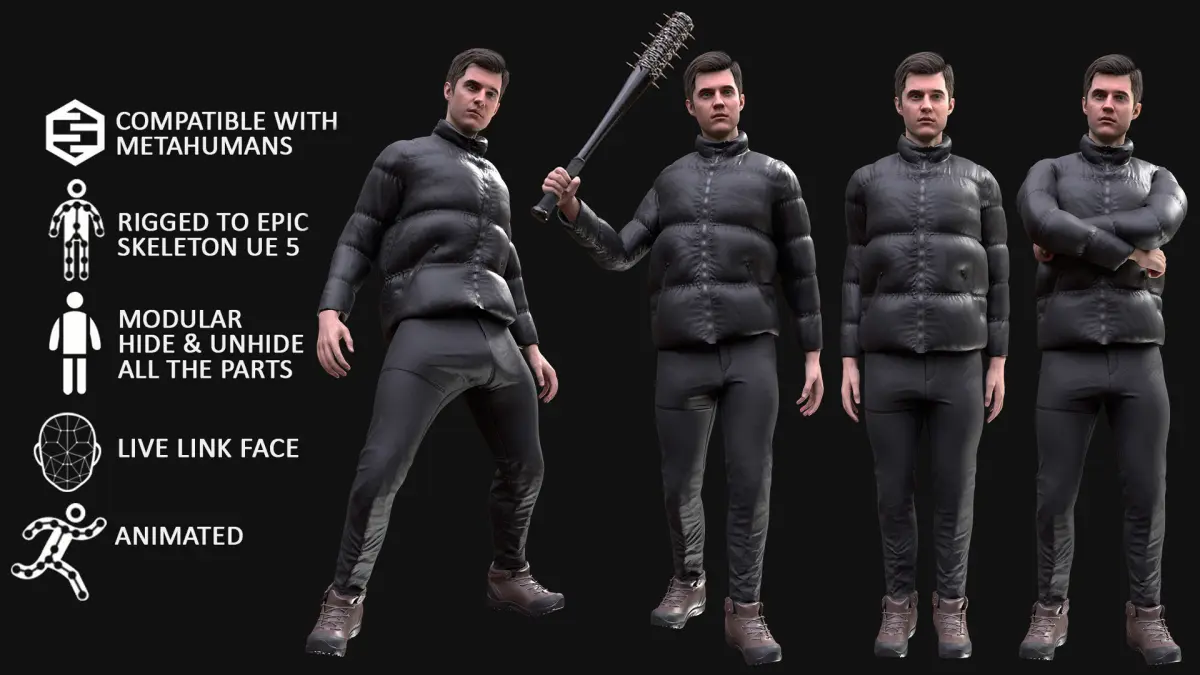 - 2. (New version - UE 5.1-5.2) 100% compatible with male Metahuman (Normal/Average body - MH Skeleton)