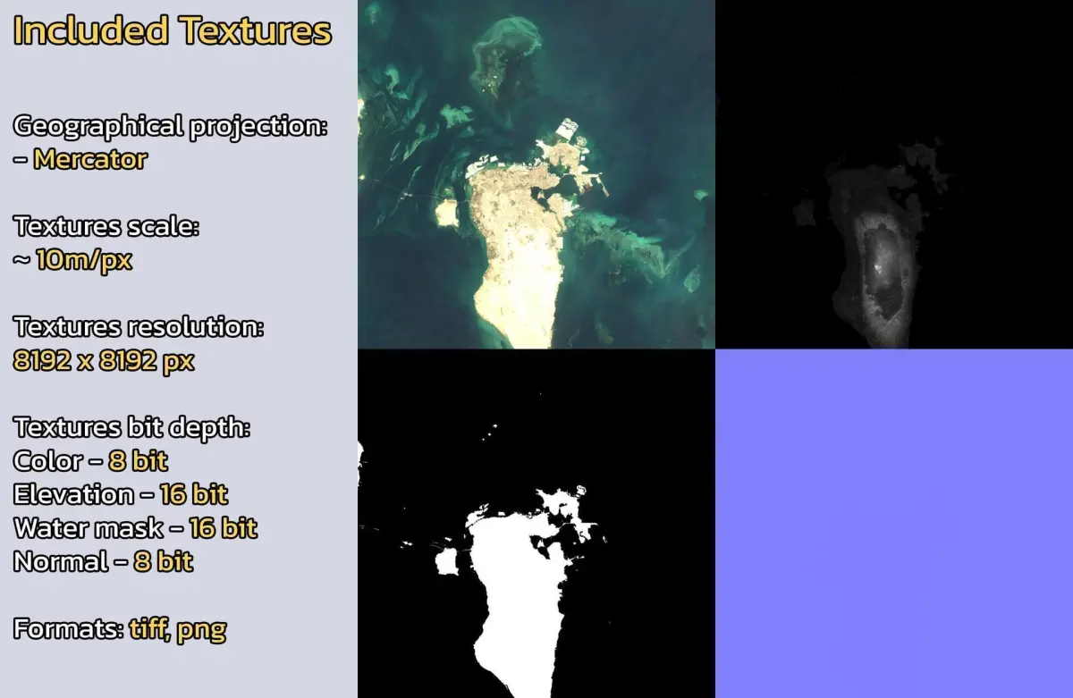 Warning: minor clouds/artifacts may be present on the diffuse color satellite texture due to the nature of the dataset. Check product images.