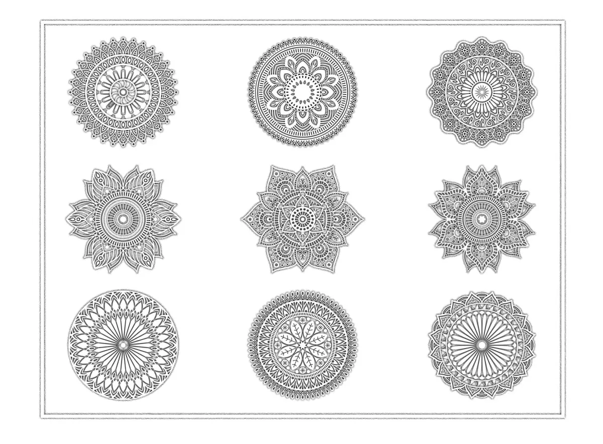 - Includes: 9 high-detail mandala style decorative patterns