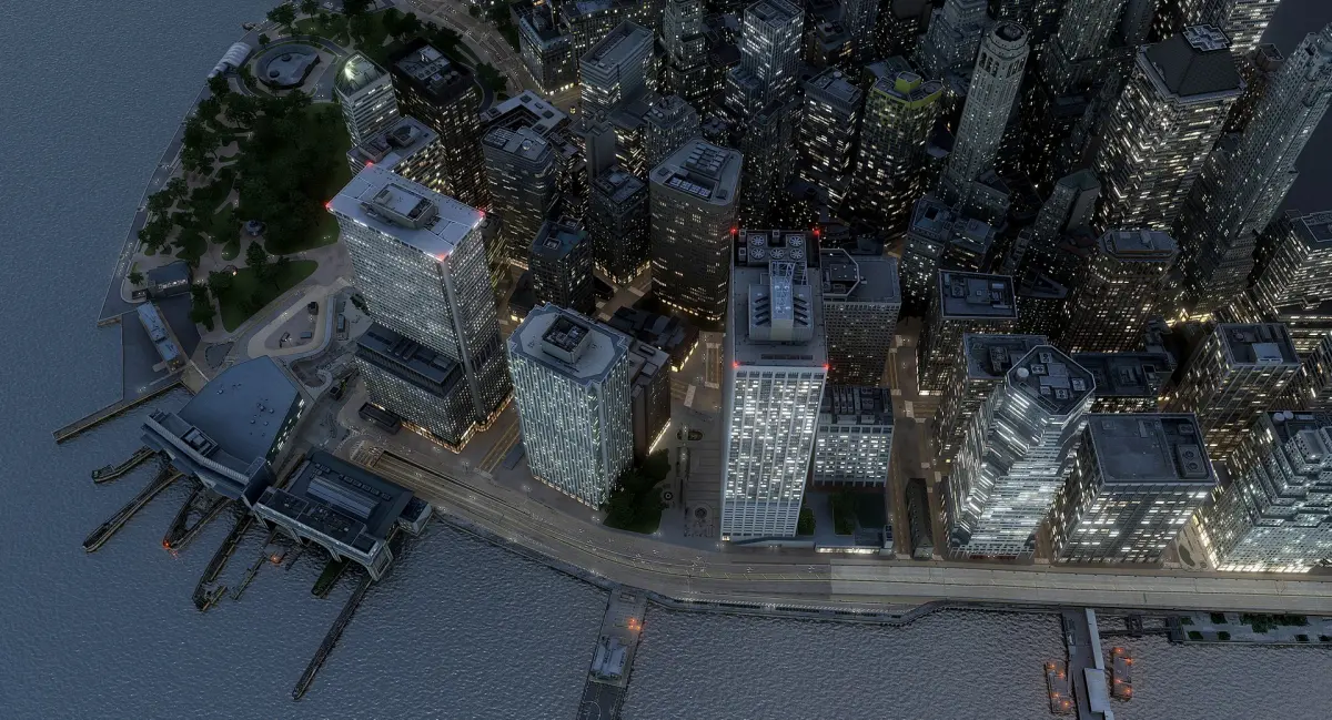 All buildings are located and are scaled based satellite images.Each building, have height and shapes exact as original.