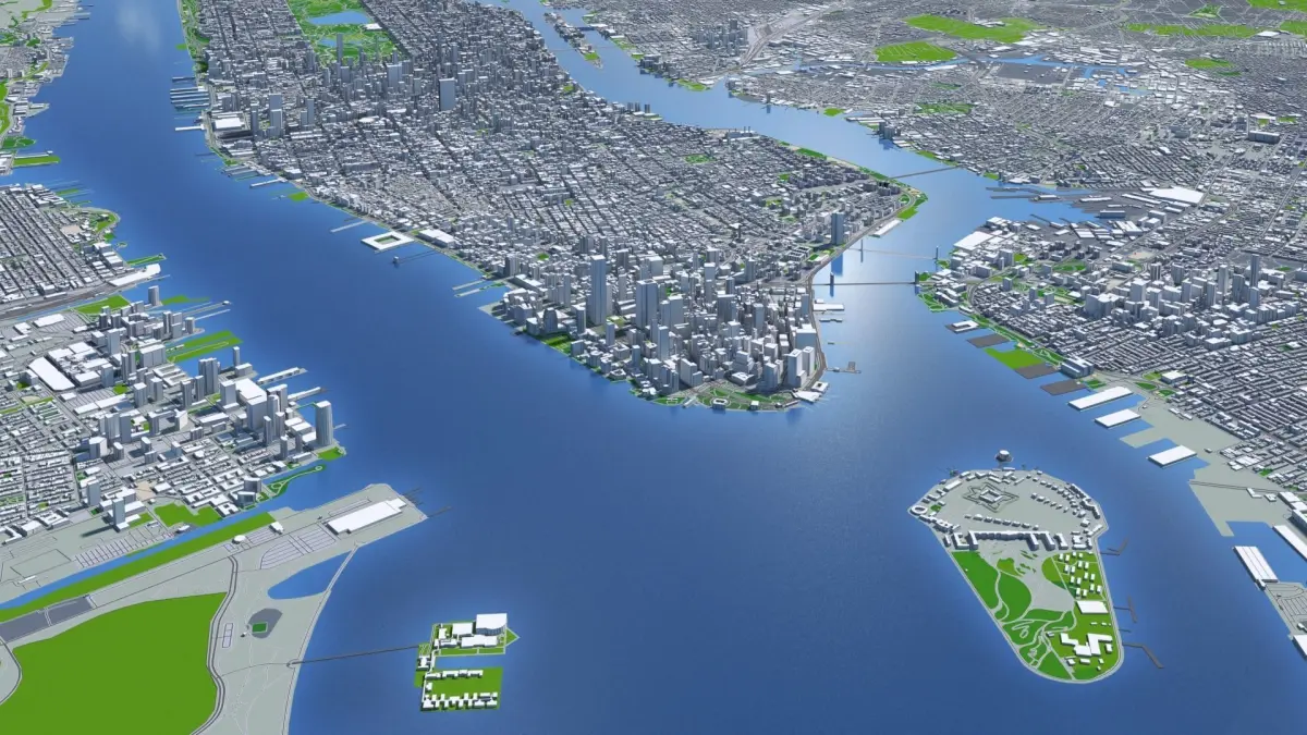 Low poly city, ready to be used in architectural visualizations, virtual and augmented reality projects, games and other. Accurate to scale 3D model of Manhattan, New York City And Surroundings .