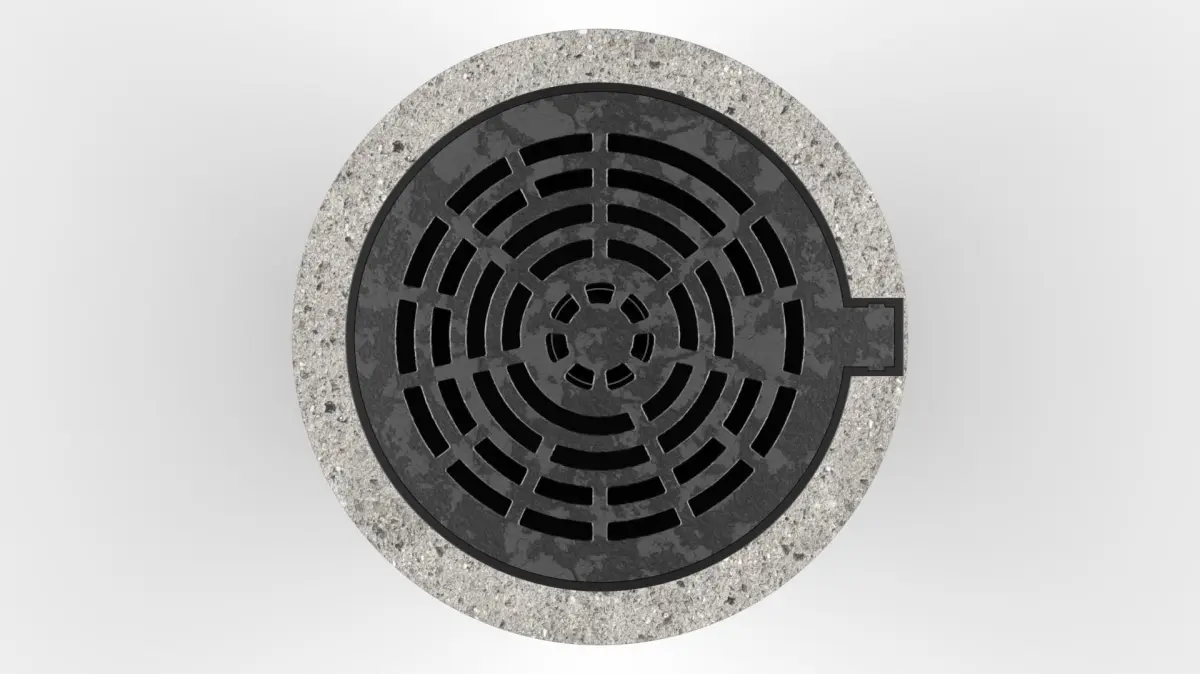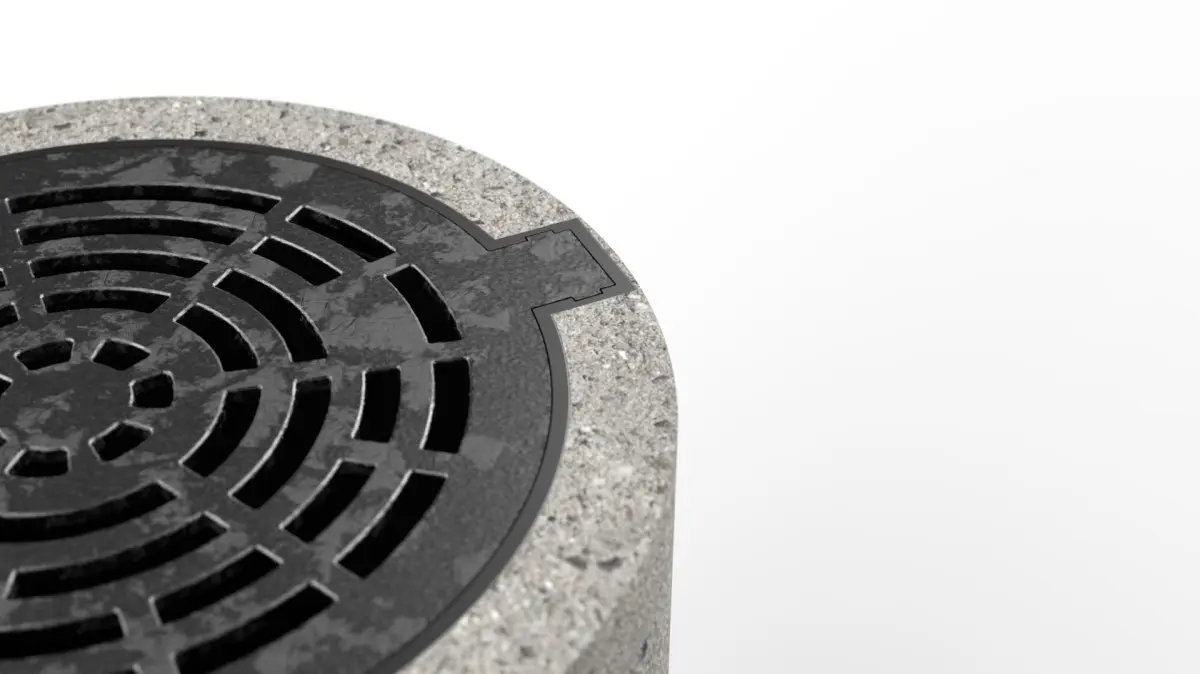 3D model of a manhole cover made in Autodesk Fusion 360 and rendered in Keyshot