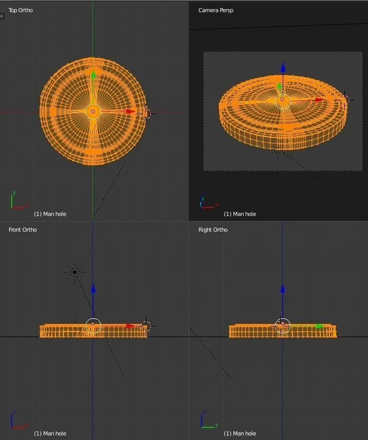 A manhole that sticks up out of the ground. You could surround this model with grass or make it flush with the top of a road. Saved as a Blender file. Rendered with Cycles at 125 samples.