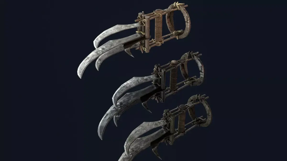 Maniac’s Modular Claws is a terrifying set of assembleable bladed claws designed for horror games, psychotic killers, slasher villains, and dark fantasy assassins. The weapon features sharp, curved blades with a complex mechanical assembly that allows them to look both brutal and disturbingly intricate.