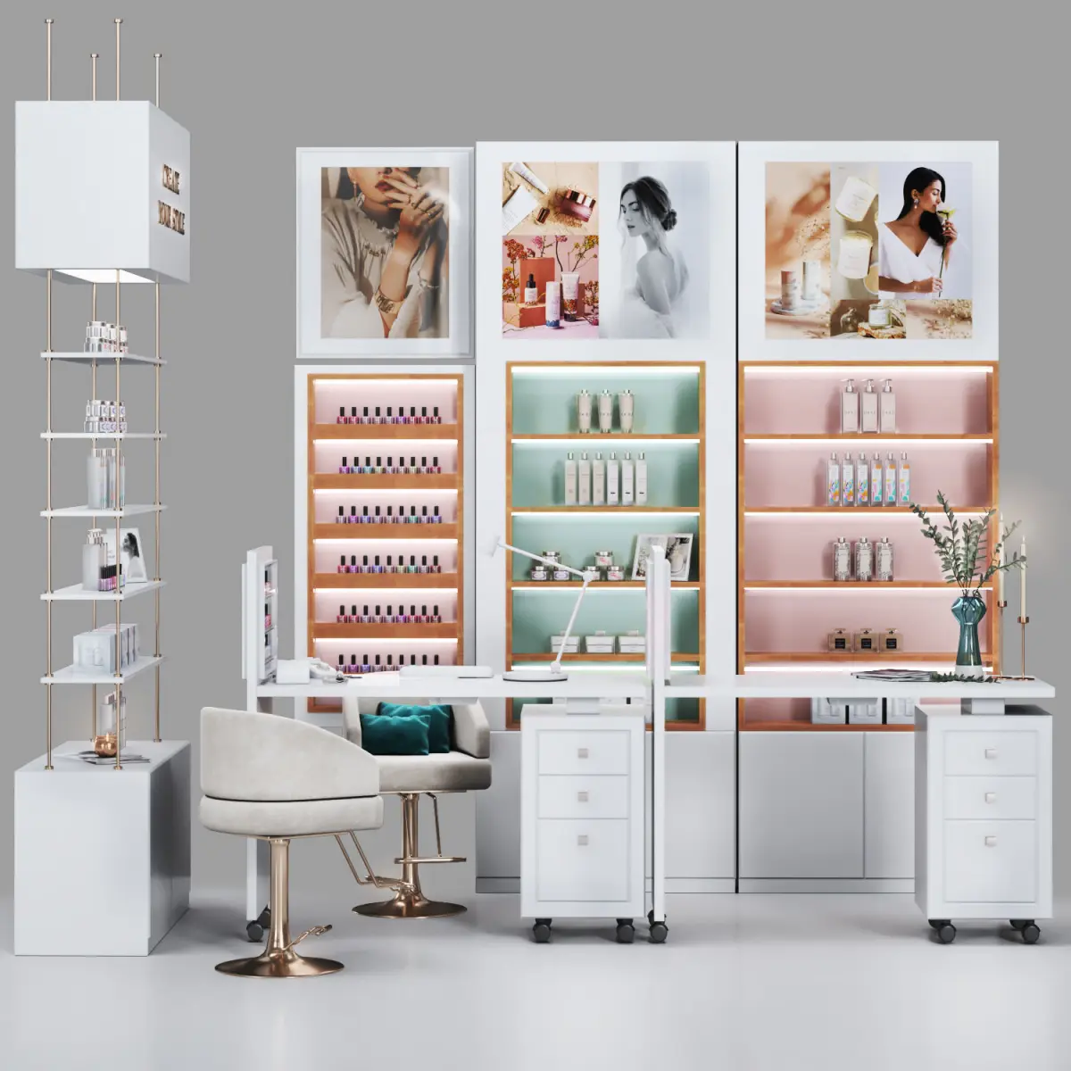 Enhance your design with Beautysalon different spaces design collection, such as haircolor bar, manicure, pedicure, mirror stands, accessories... wish you great renders! https://www.cgtrader.com/3d-model-collections/beauty-salon-designings