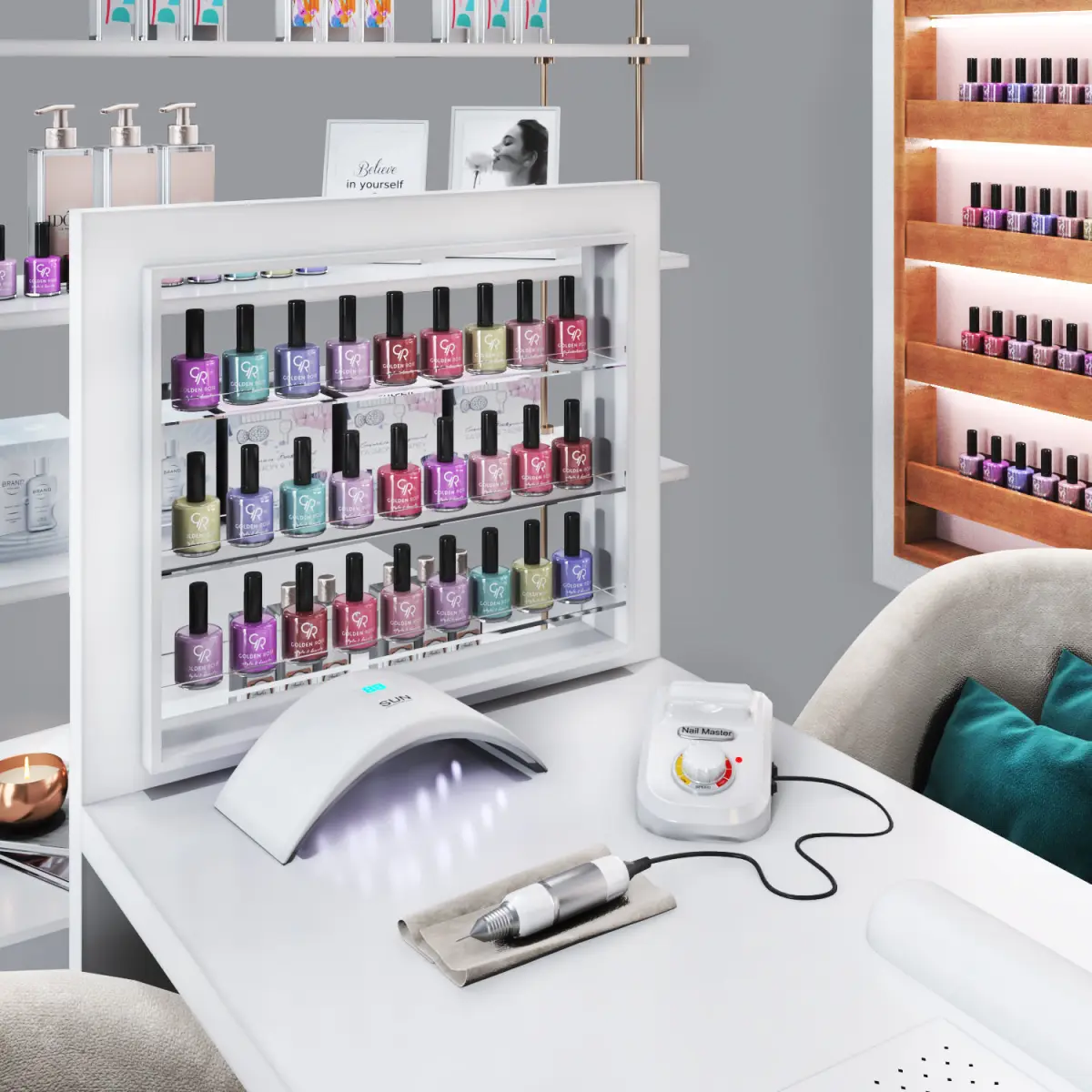It can be used as a single work station or linked together to create a nail bar.