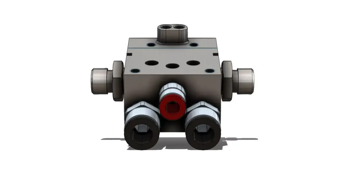 Disponibilizei um modelo 3D preciso e realista de um Manifold Graco 288218, ideal para projetos de design, simulação e prototipagem.