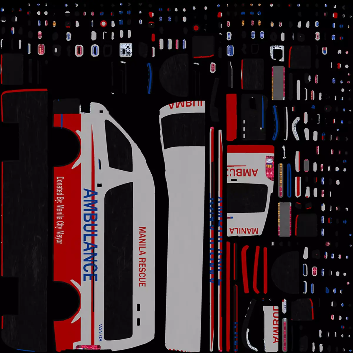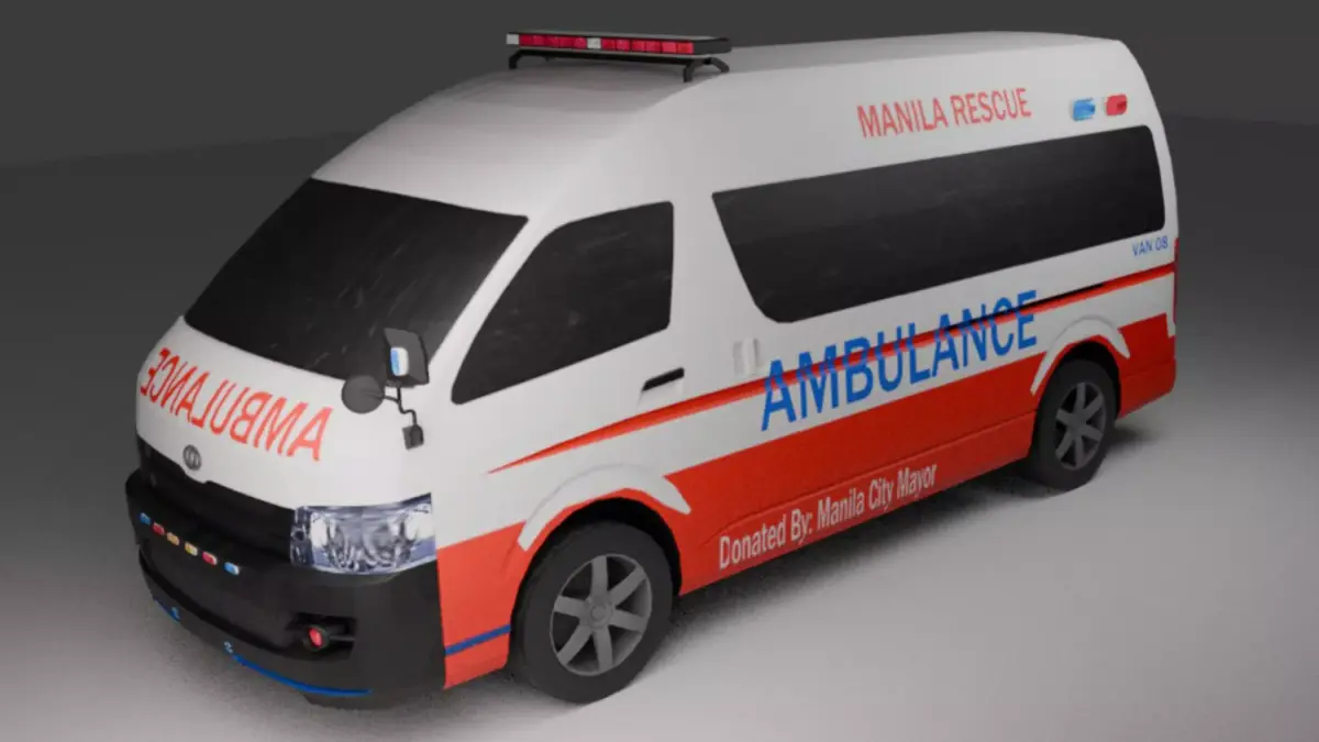 This is a 3D model of a Manila-style ambulance van commonly used by hospitals, barangays, and emergency response units in the Philippines. The vehicle features a practical and functional design suitable for urban emergency service scenes.