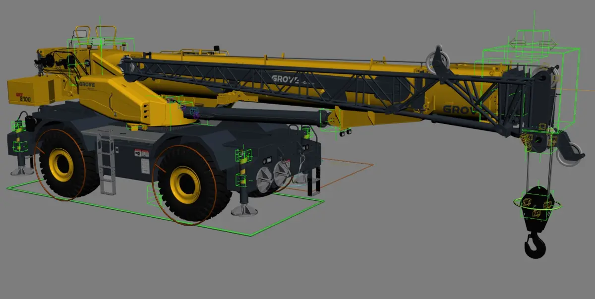 High Detailed and realistic 3d model of Manitowoc GRT8100 Rough Terrain Crane Rigged.