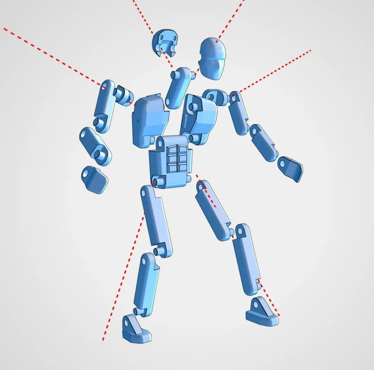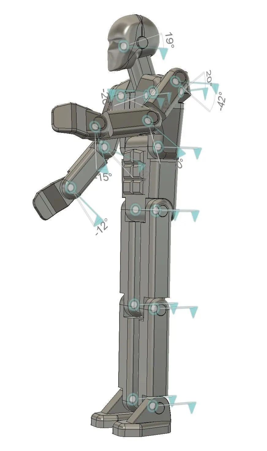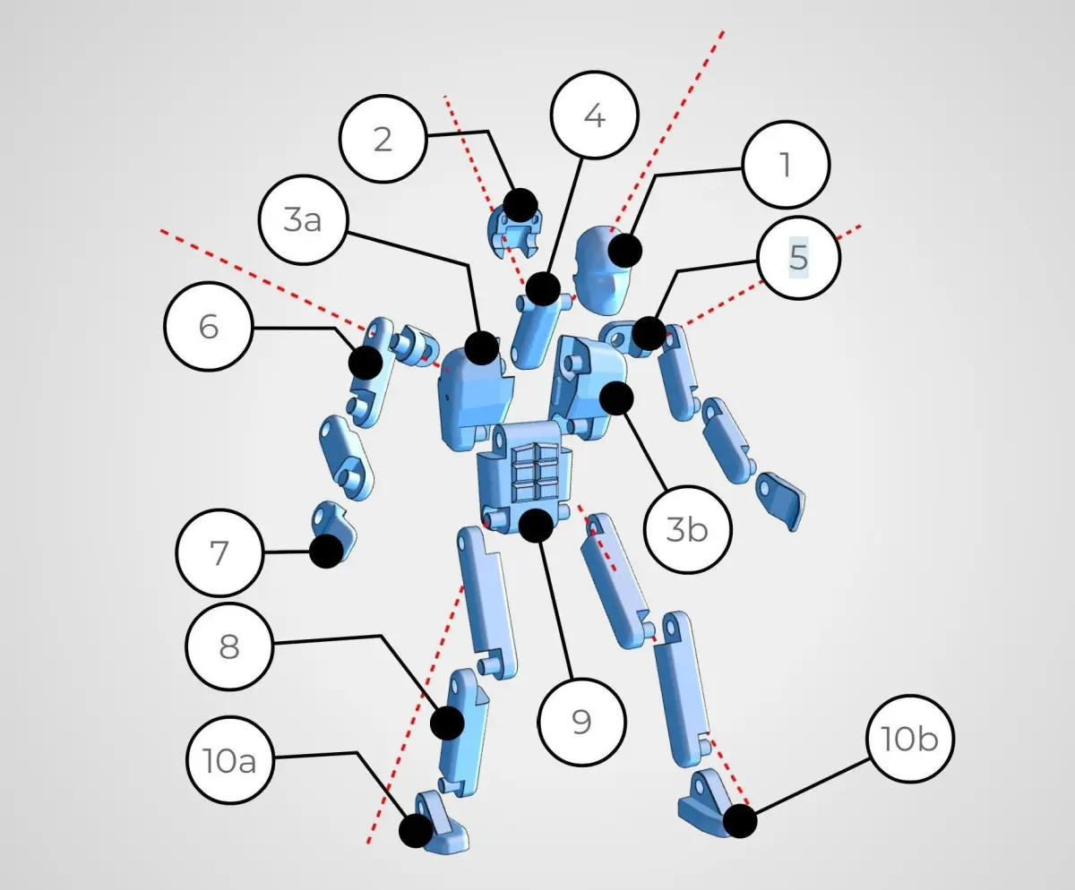 This articulated humanoid mannequin was developed in a CAD program to participate in technical productions - filling scenes, clarifying the size of objects. Its native size corresponds to the height of an adult (165 cm). Therefore, if you are going to send it for printing, do not forget to set the appropriate scale. You also have to fasten some parts together. This can be done with screws or glue. All hinges are made without gaps. The material is supposed to be slightly elastic and this will make the joints quite tight. I did not print this model myself, but if you find any inconsistencies and errors, I undertake to correct such shortcomings as soon as possible.