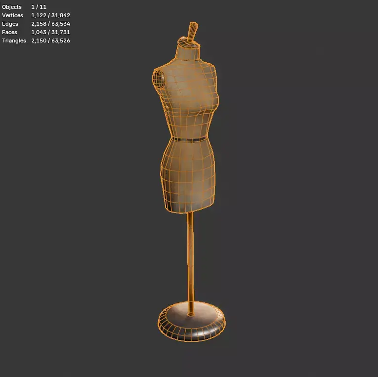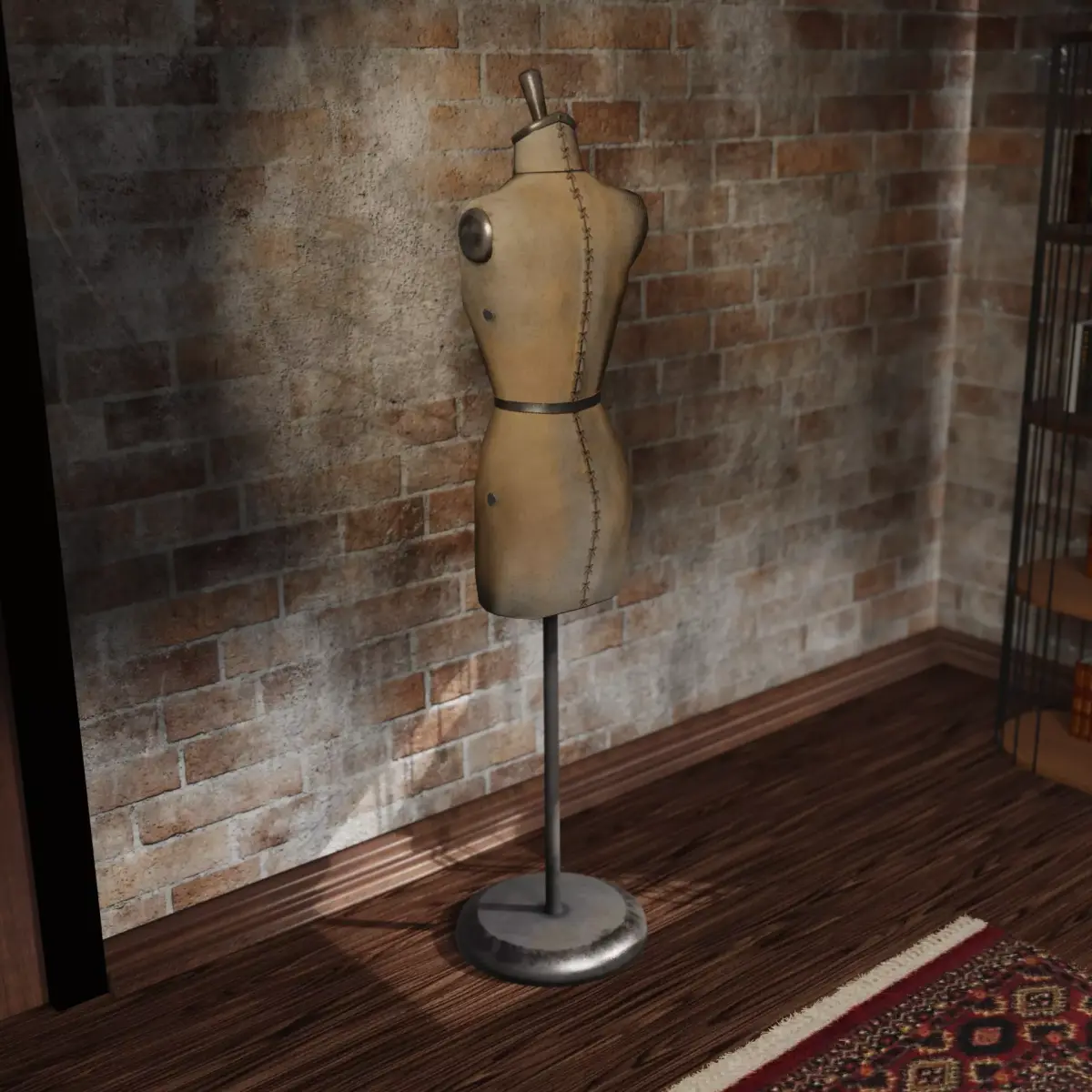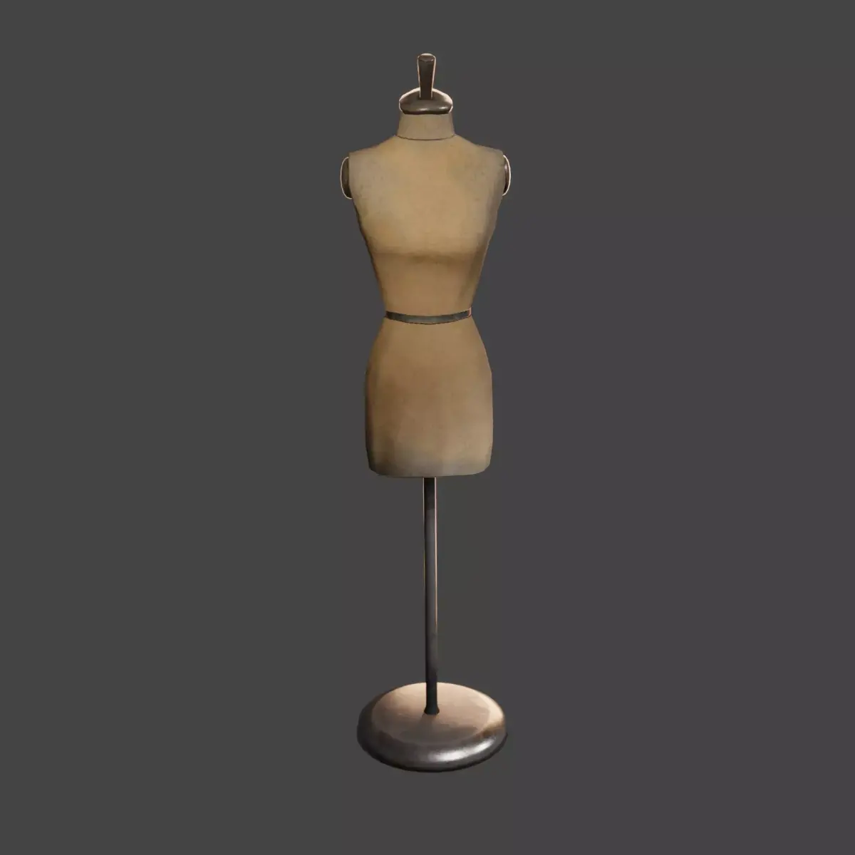 Detailed 3D model of a vintage tailor mannequin with worn surface characteristics and realistic materials.Designed for historical scenes, fashion environments, cinematics, and game-ready applications.