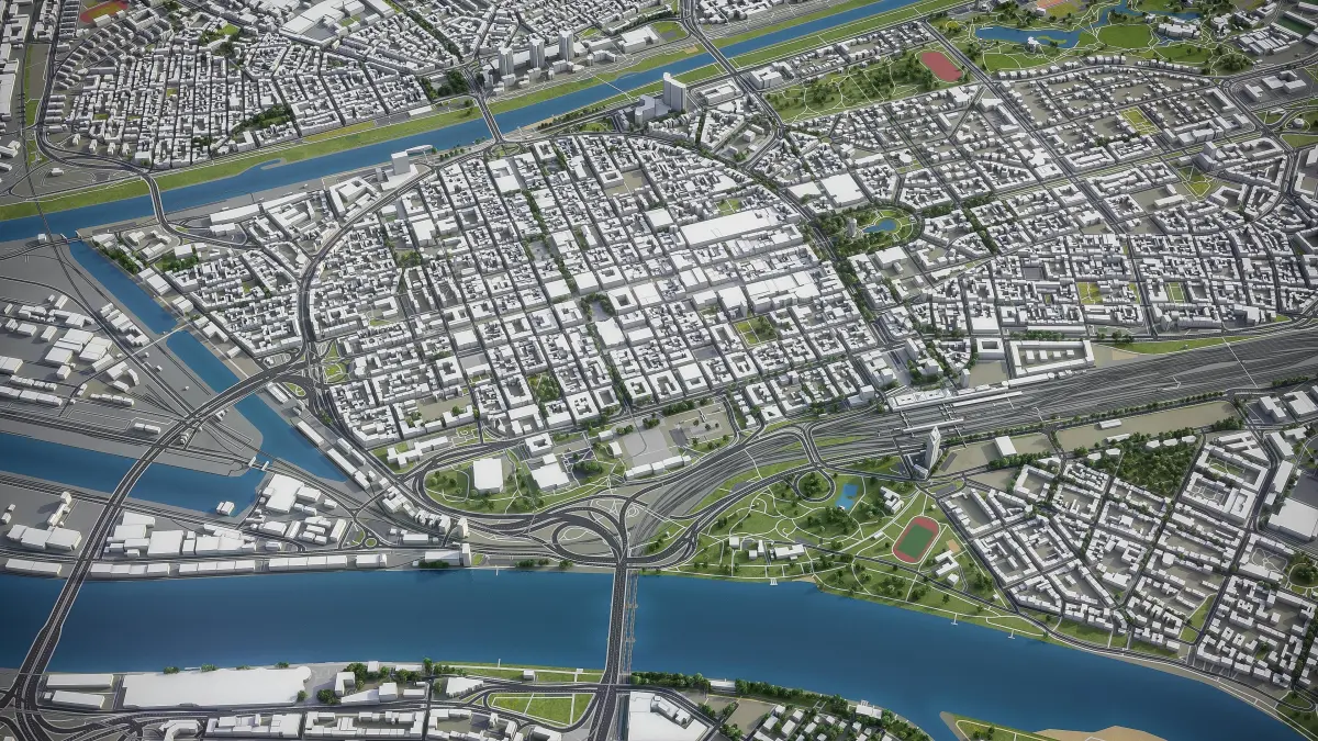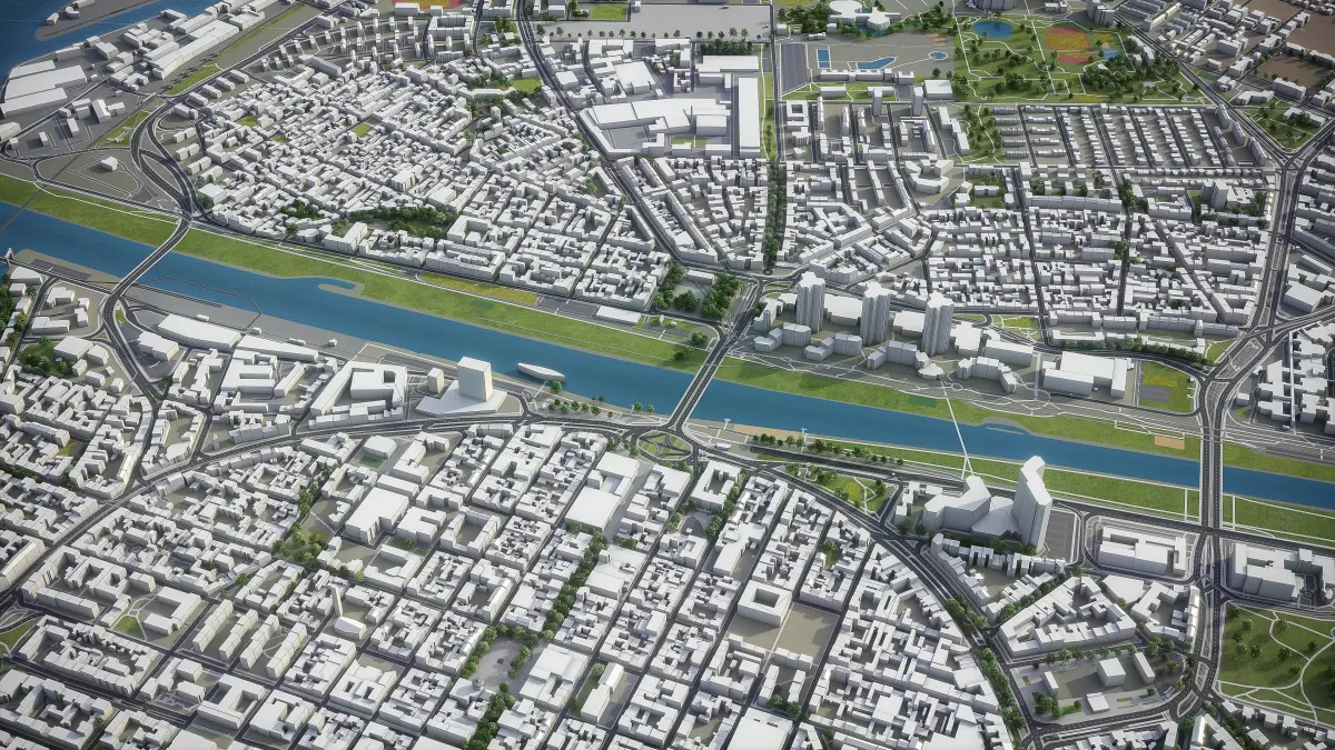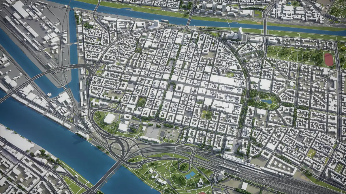- Full city extents up to 100 x 100 km — or crop to an area of interest for better format compability and scene performance