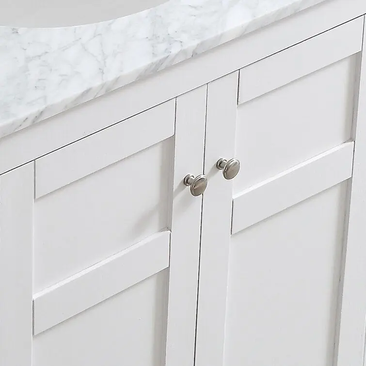 - A central fixture in any master or guest bathroom, the vanity is the spot for everything from brushing your teeth to stashing your bathroom essentials. So round out a remodel with a piece that lets you do it all, like this 30'' single vanity. Crafted from a solid oak base in a white finish, this vanity features a Carrara marble surface and an ovular ceramic undermount sink.