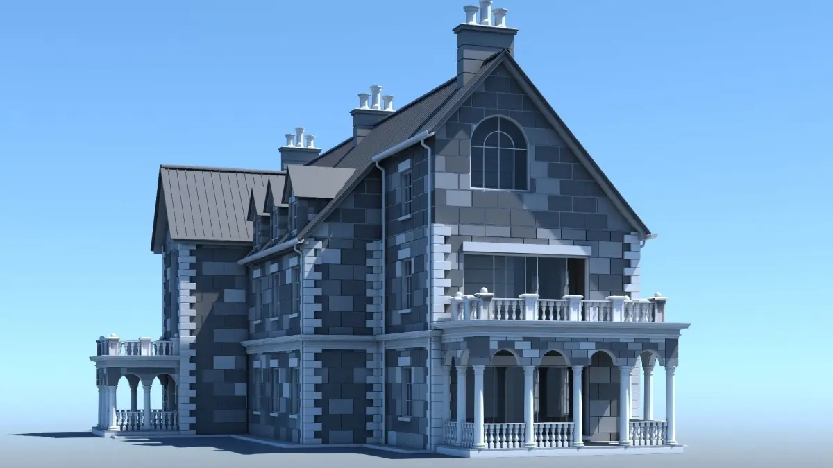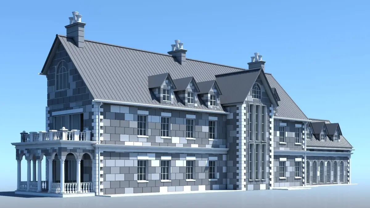 Detailed 3d model of a mansion.