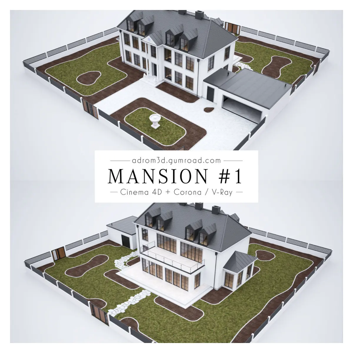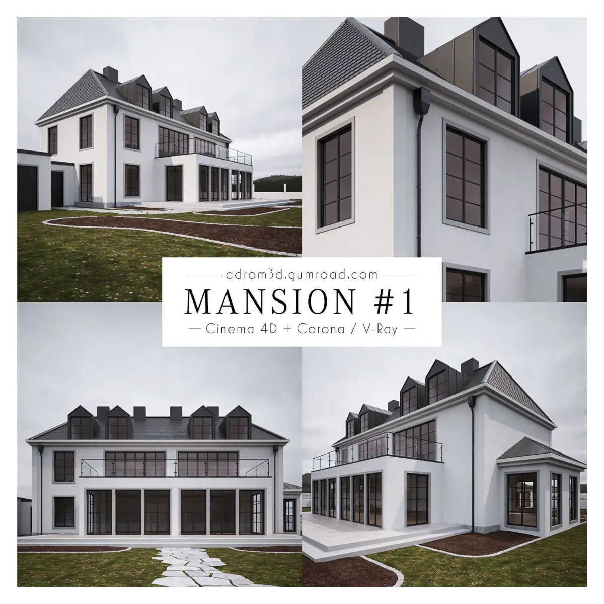 DescriptionNot only the exterior of this luxurious mansion is detailed. Also all rooms are modeled render-ready. So the scene is perfect for walkthroughs, VR settings and similar projects.