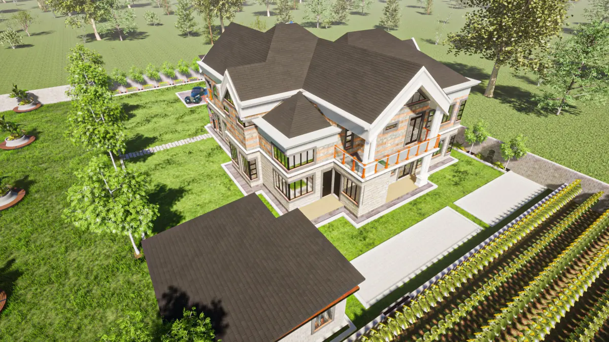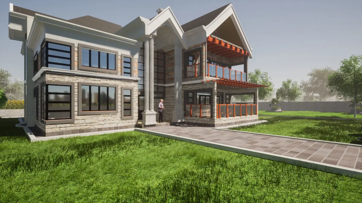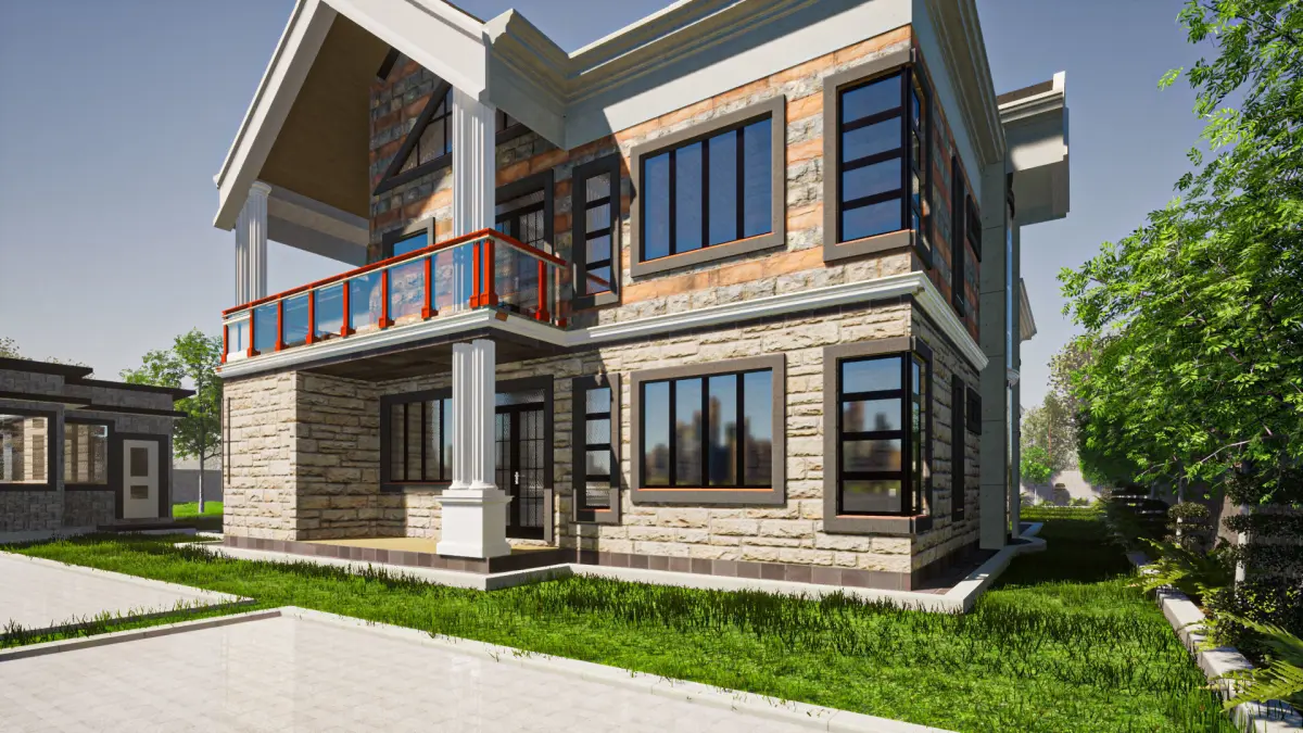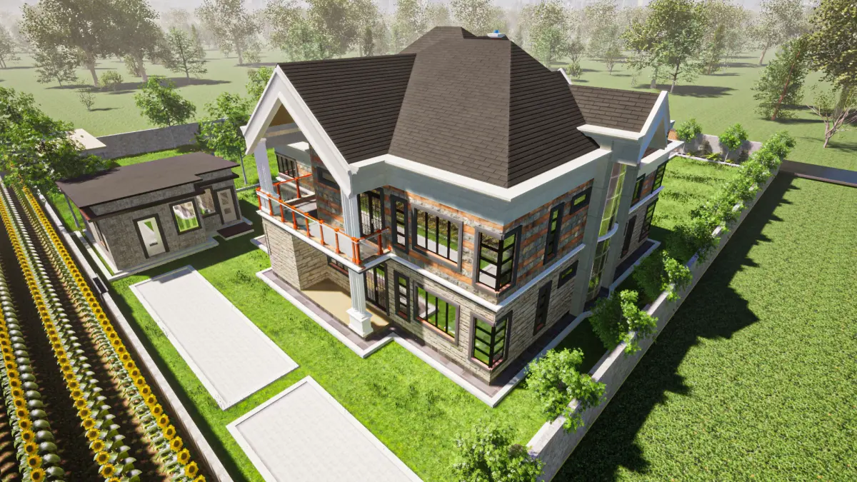 This is an architectural model for a mansion with a pitched roof and concrete gutters with interior partitions. The model is as is in the SketchUp screenshots. Vegetation and materials may differ in the models. The model is natively from SketchUp and rendered in Twinmotion. Thanks for downloading. Enjoy