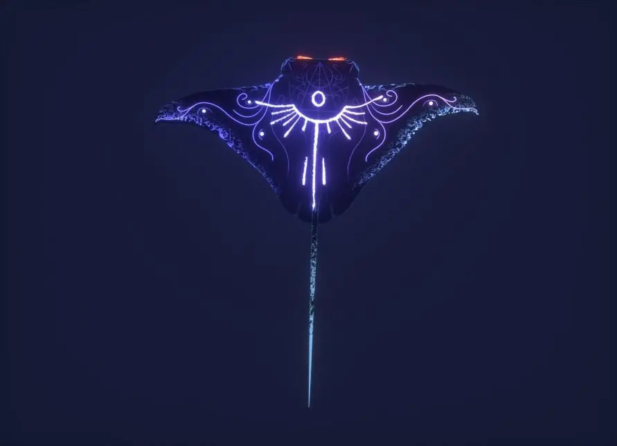 Fantasty themed glowing Manta Ray fully dynamic rigged and animated loop.Native is Cinema 4D + Octane/physical renderFor other programs that are not Cinema 4D, there's the animated version in .fbx and .obj
