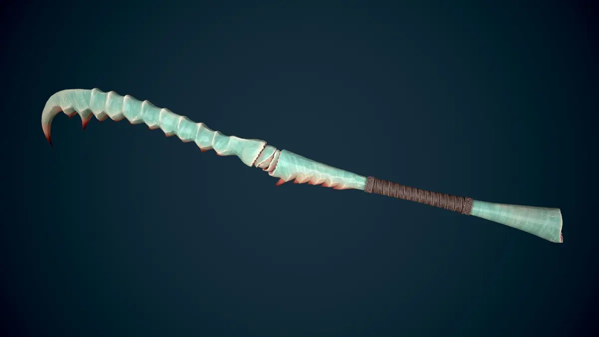 Low-poly model of the Mantis Sword doesn't contain any n gons and has optimal topology. The archive includes such 2K textures: base color map, metalness map, normal map (OpenGL), and roughness map. Images and video were rendered in Marmoset.
