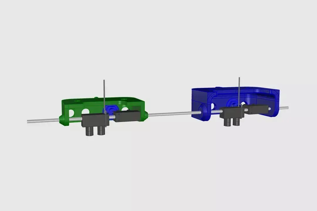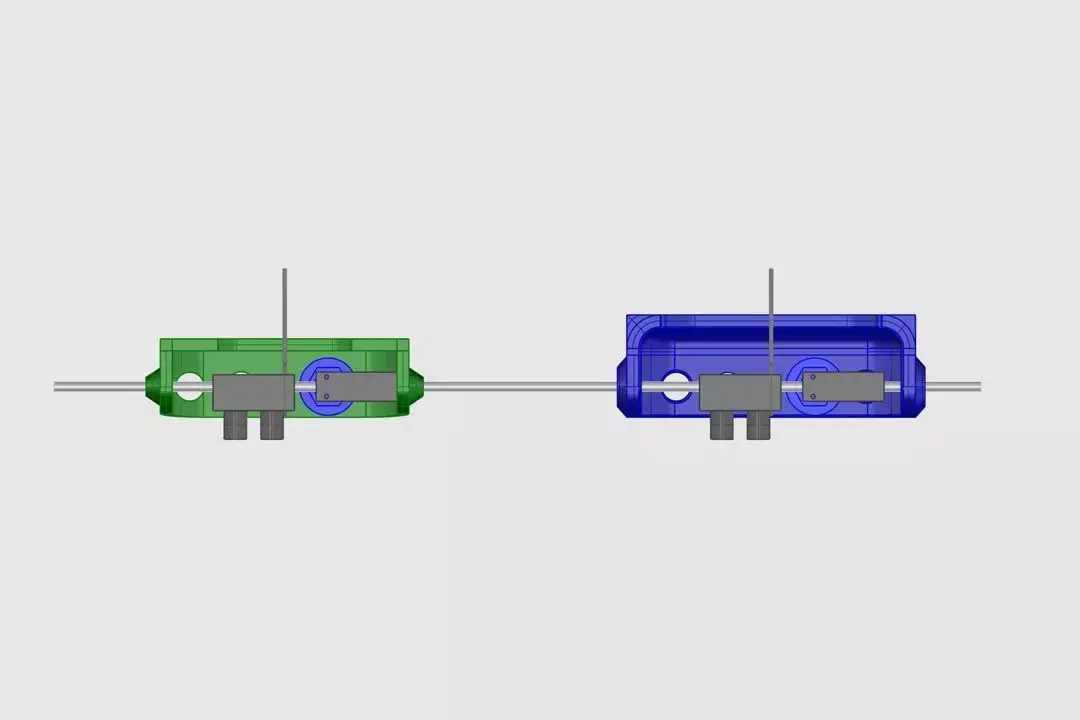 Terminal blocks are attached to the rod and use spring wire to move the turnout blades.You can mount toggle switches, like the MTS 102, MTS 202 in different positions, making the system adaptable for different setups. The files come with a small and a large version of the drive. I used 2 mm welding wire as the drive linkage, but a cable pull or control rods made from other materials would work just as well.
