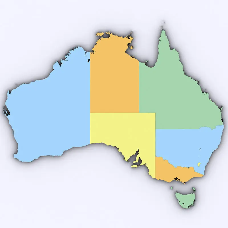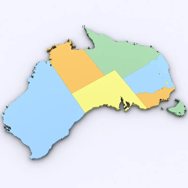 High poly 3d model of the map of Australia. Includes all Australian Regions.
