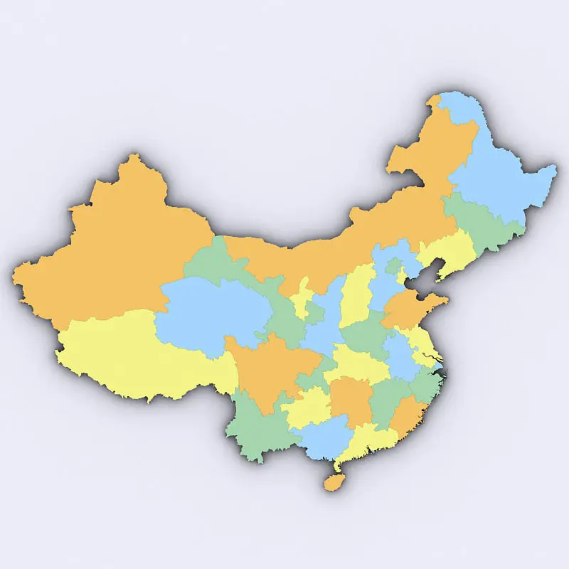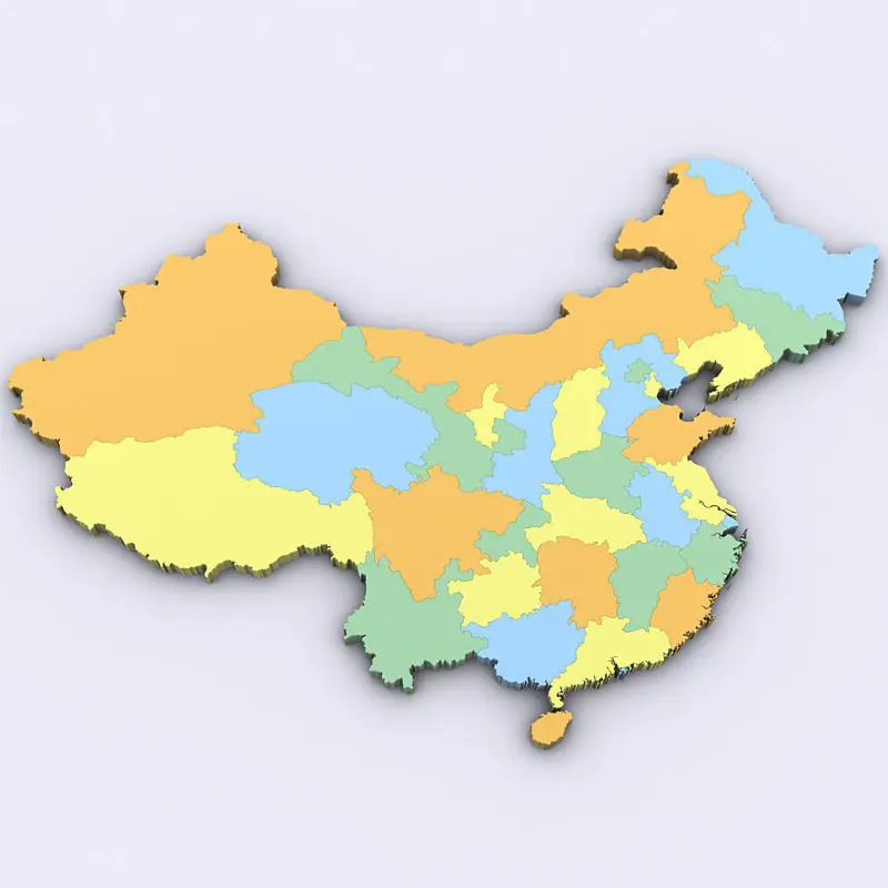 High poly 3d model of the map of China. Includes all the provinces of China in a very detailed complete map.
