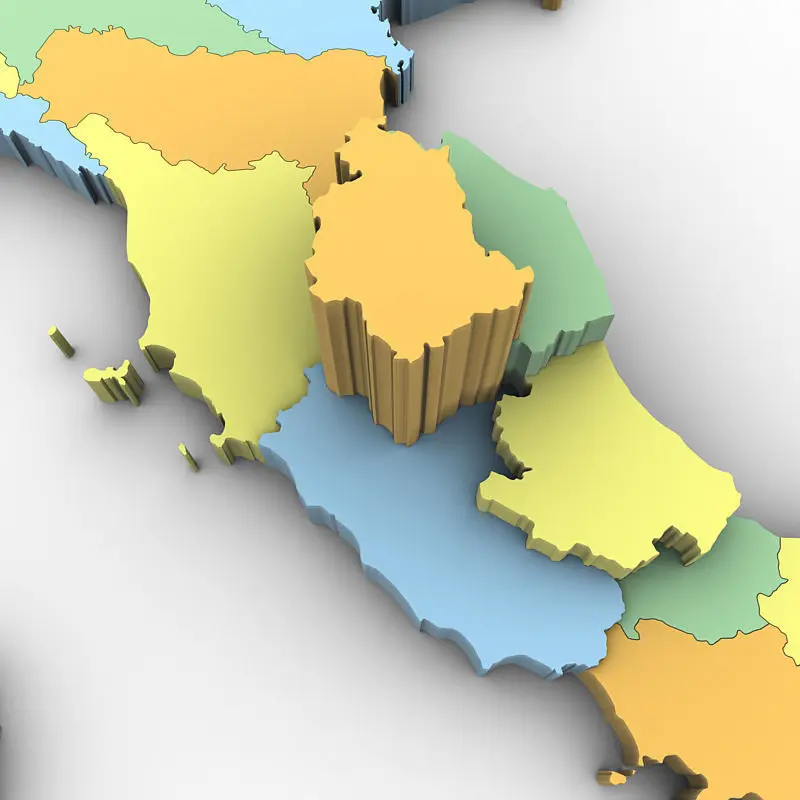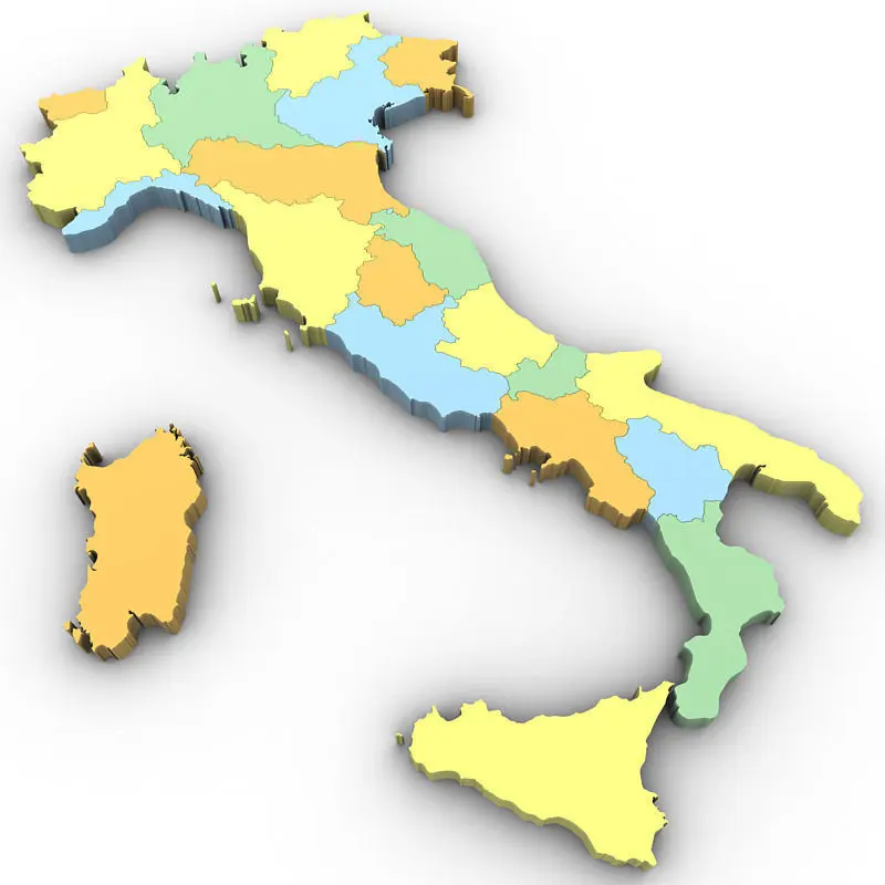 High poly 3d model of the map of Italy. Includes all the regions of Italy in a very detailed complete map.