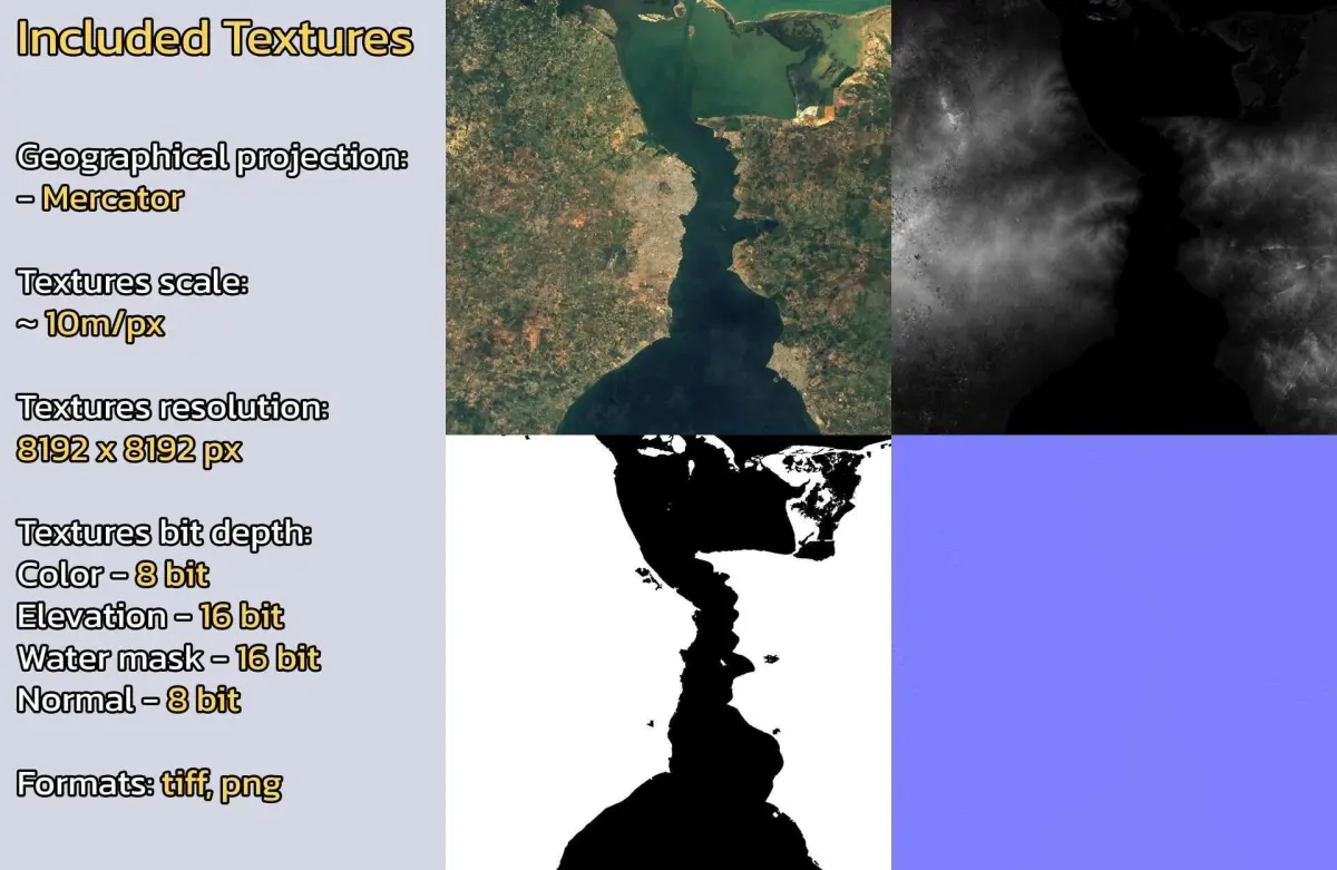 - Textures resolution: ~10m/px