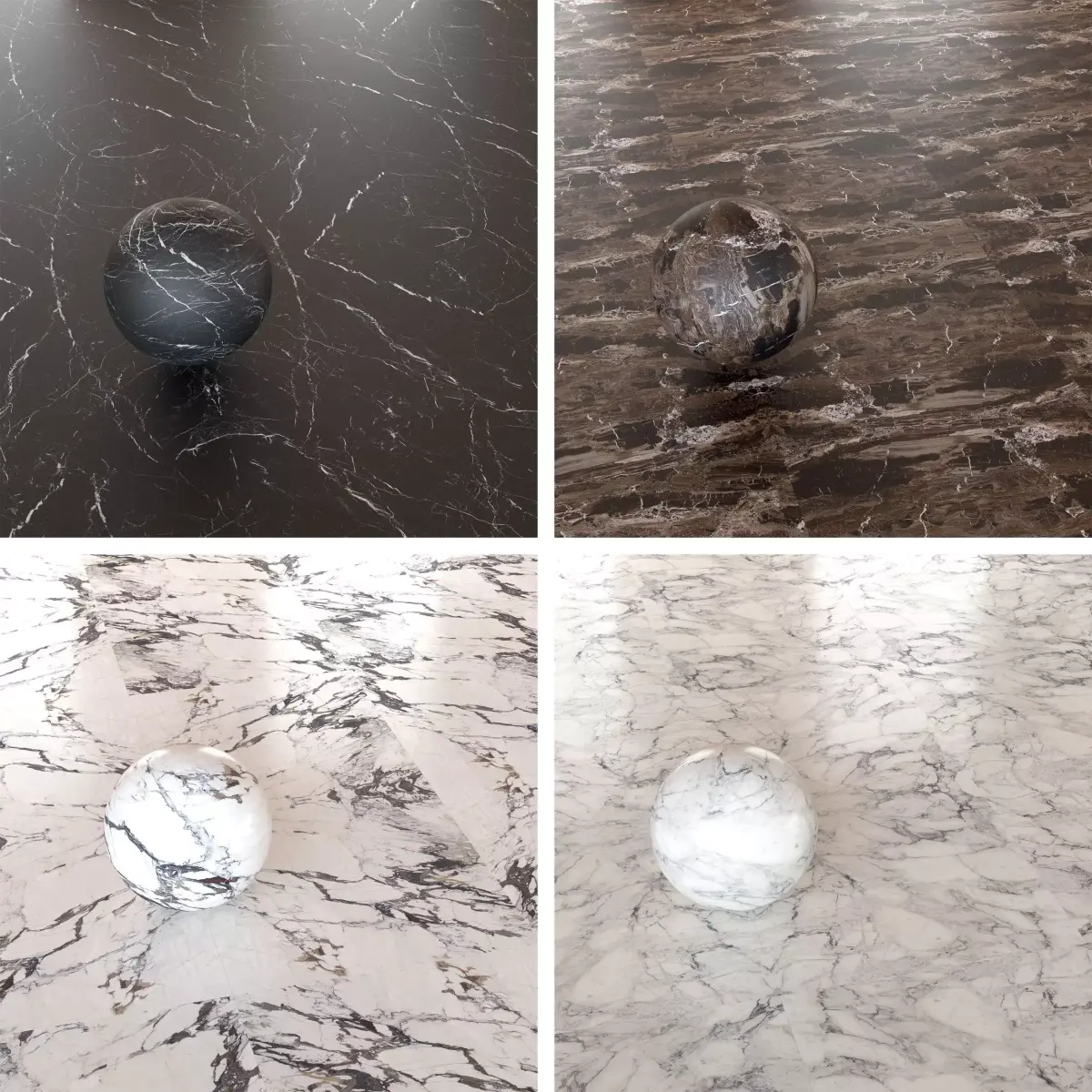 - 10 Marble Types: Altissimo, Frappuccino, Fior di Pesco Carnico, Elegant Black, Crema Marfi, Emperador, Calacatta Black, Capraia, Calacatta Extra, Calacatta Vena Vecchia.
