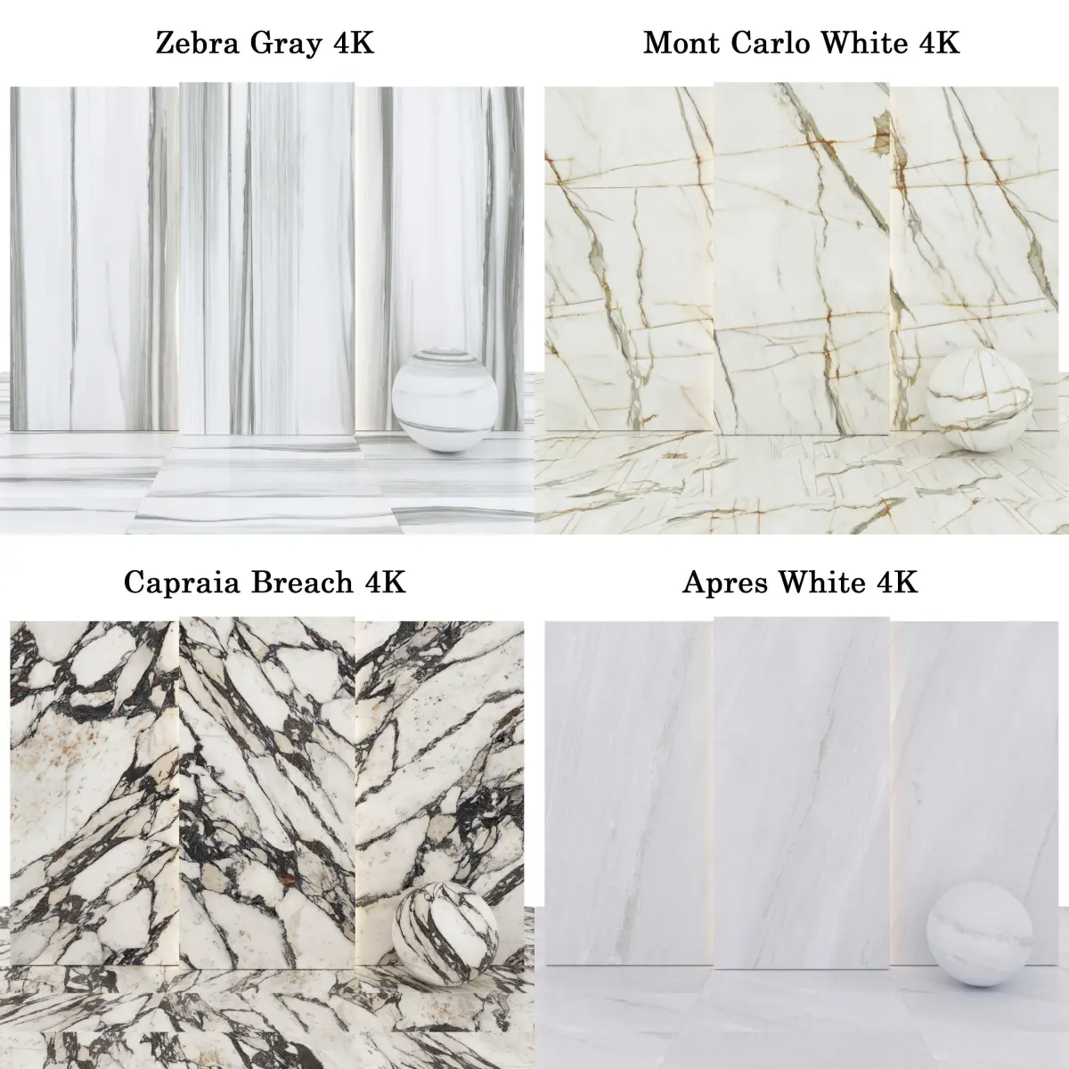 5 texture Apres White Marble with glossiness Maps