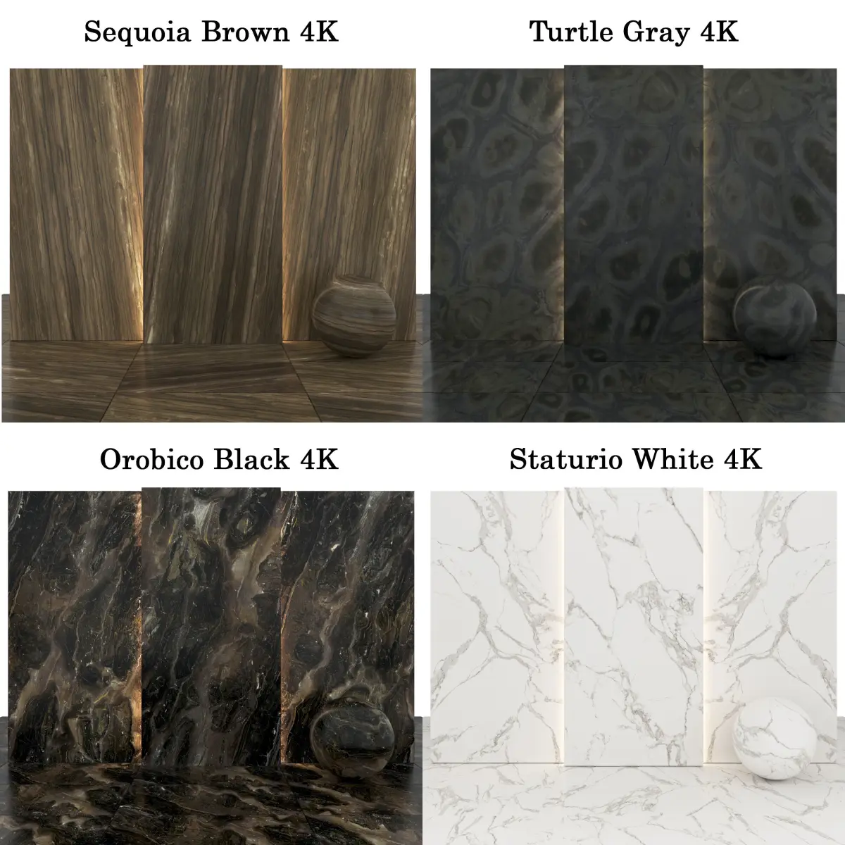 6 texture Orobico Black Marble with glossiness Maps, normal Maps and height Maps