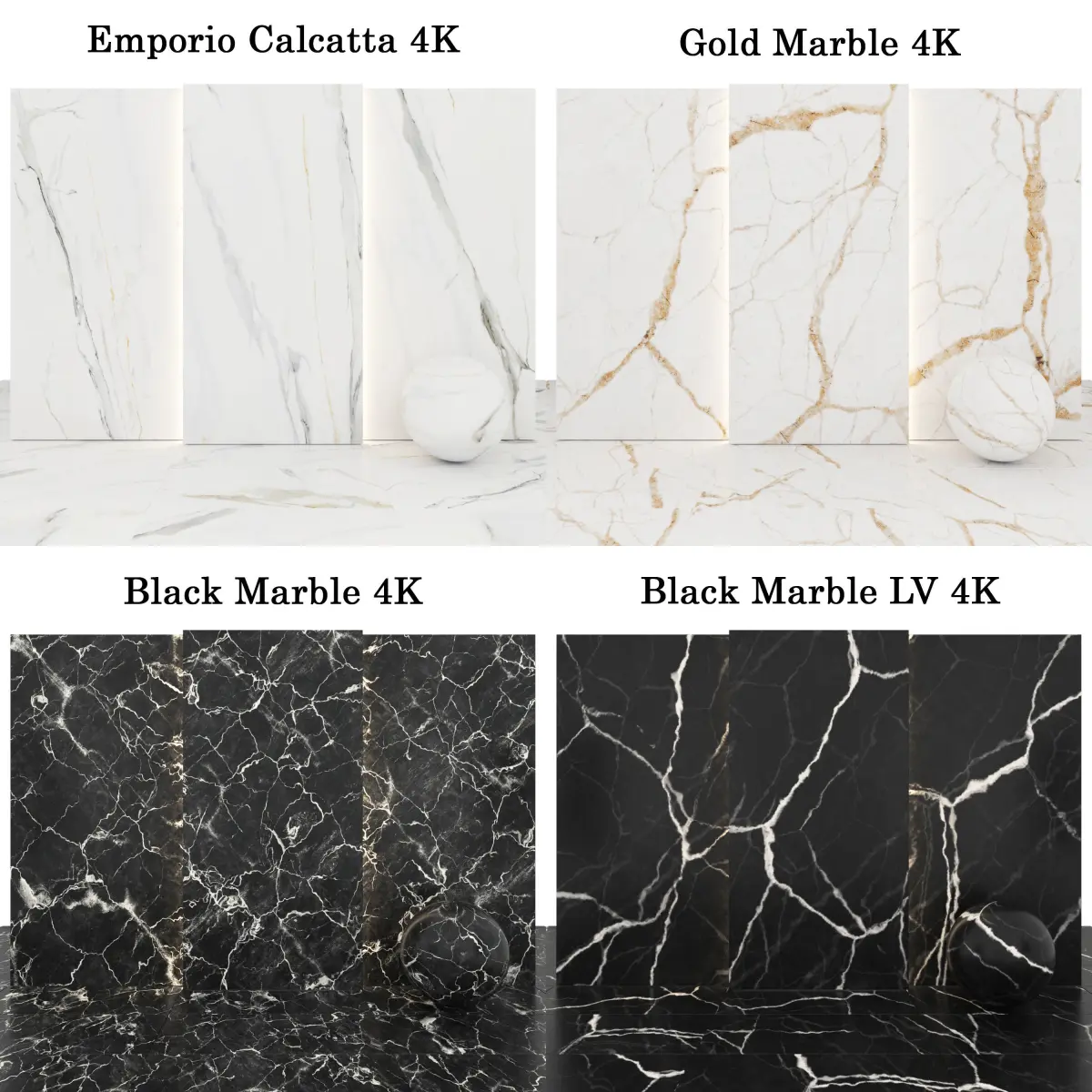 6 texture Black Marble (White Larg veins) with glossiness Maps