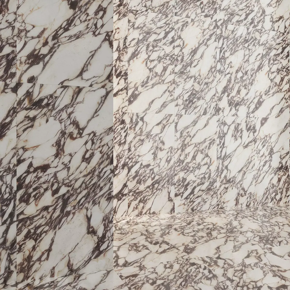 Marble Texture + 4 PBR materials (High Gloss, Polished, Natural, Brushed Matte) + 3D model of tiles of different sizes: