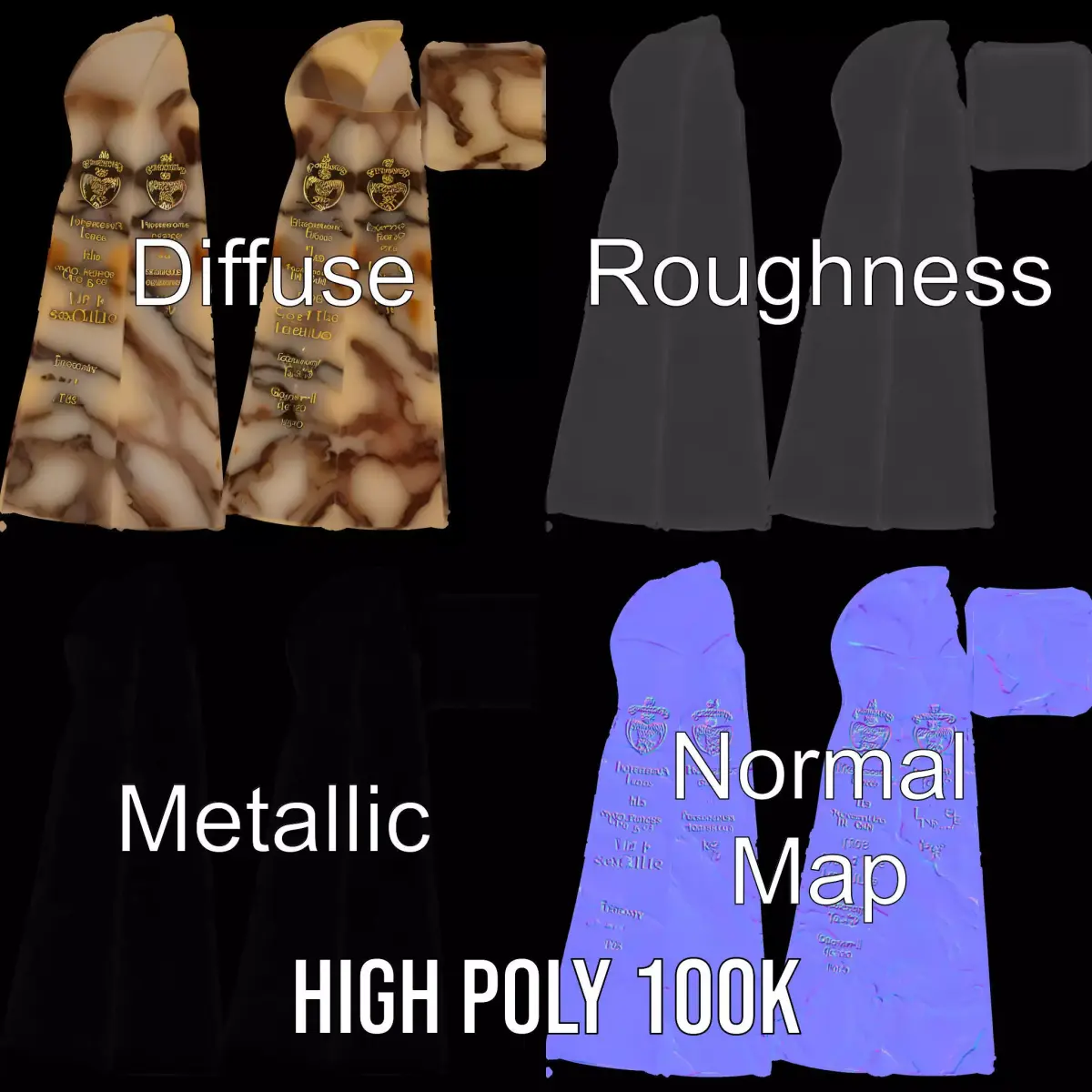 The Marble Obelisk model pack features a detailed and elegantly designed obelisk crafted with a realistic marble texture. This versatile model is perfect for architectural visualizations, historical simulations, or as a decorative element in game environments. Each model has 3 levels of detail: low-poly (1000 triangles for mobile), middle-poly (10,000 triangles for environment), and high-poly (100,000 triangles), which allows for the use of this model in production rendering (such as 3ds Max, Maya, Cinema4D, Blender, Vray/Corona/Cycles and all others), game engines (Unity and Unreal compatible), and interactive presentations, providing a choice of detail based on the LOD System principle. The model's textures are PBR, Diffuse, NormalMap, and reflection/roughness/metallic, which are suitable for any modern rendering engine. All models are accurately unwrapped and have no overlapping UVs. All textures are 4096*4096 in size. If you liked this model, please leave a like and comment!