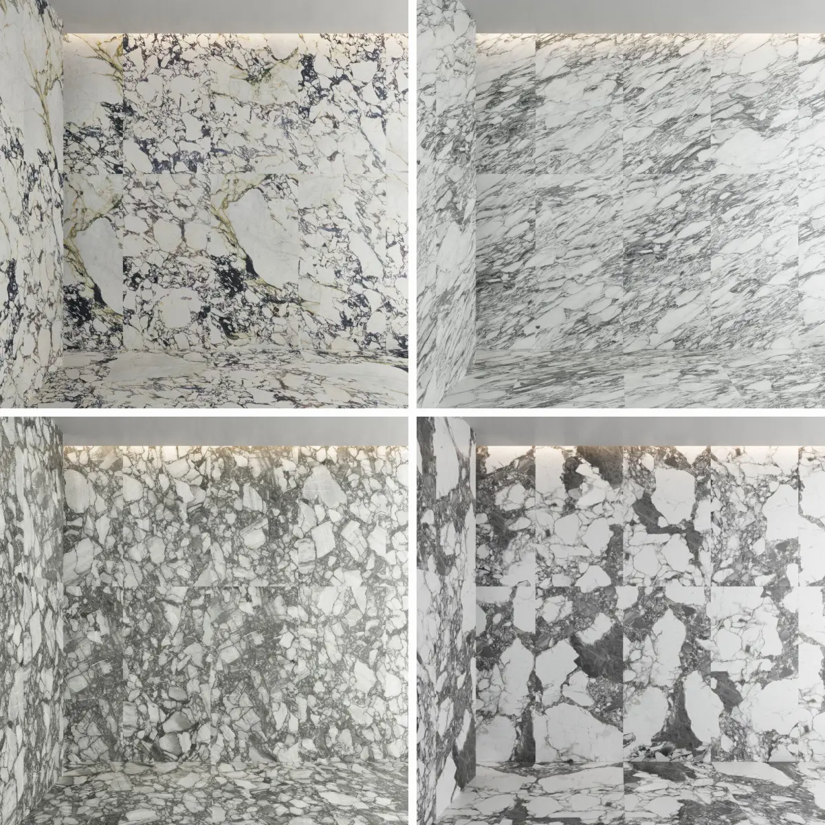 4 Marble textures (4 glossy and 4 matte marble materials) and 3D model of tiles in different sizes: