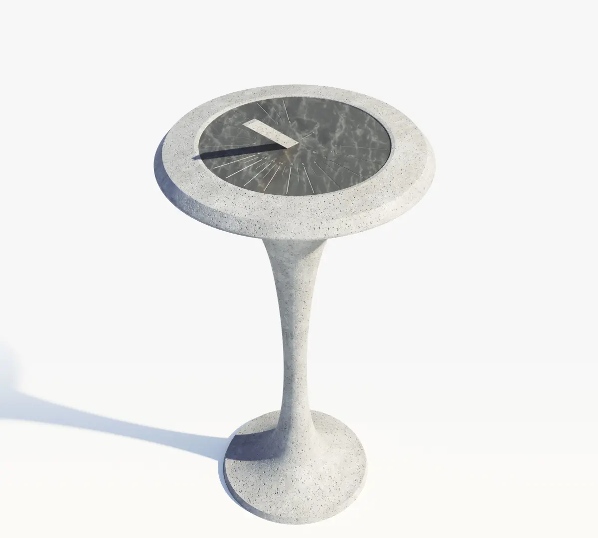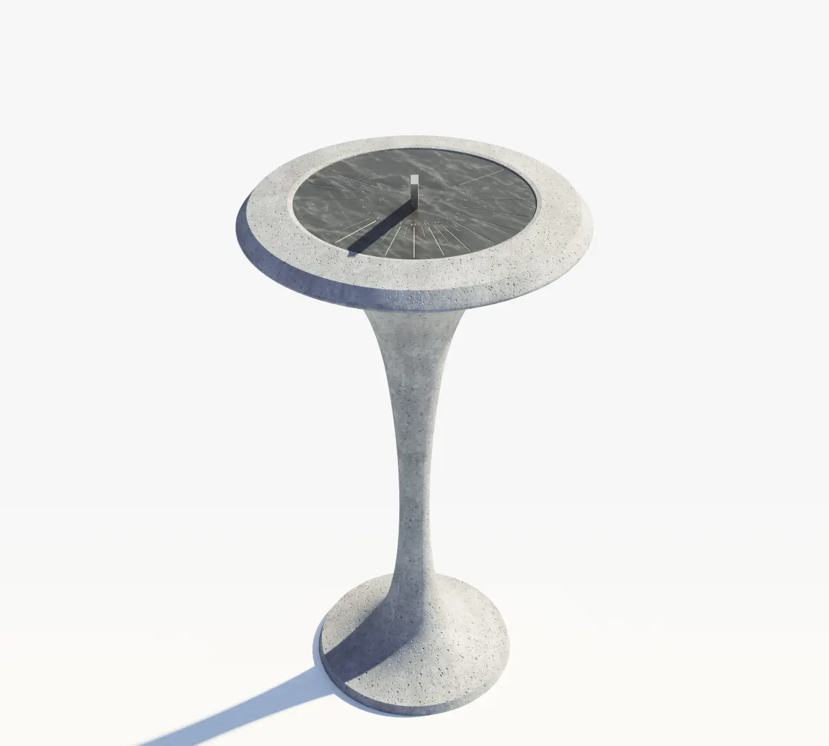 A modern marble sundial mounted on a concrete plinth. Created natively in Cinema 4d and rendered with Redshift.