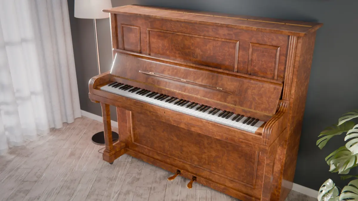 High quality, photorealistic upright piano model for interior scenes, based on real piano references and measurements. The model is fully textured and ready to use.