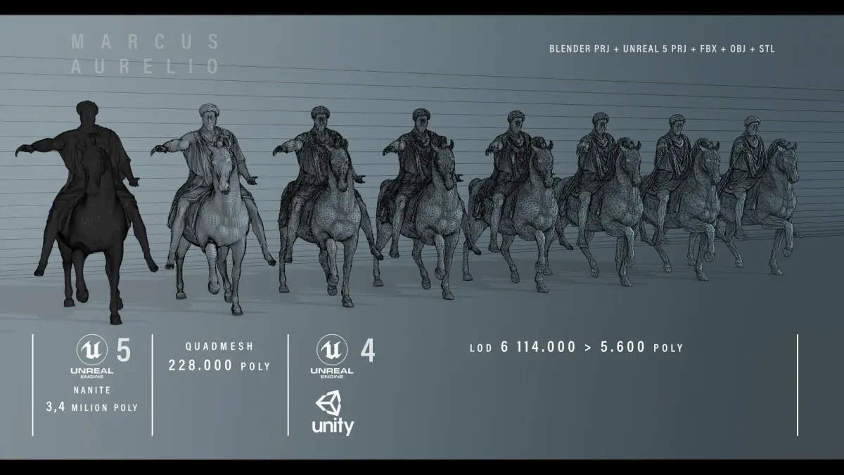N*6 - Lod : Equestrian Statue Level LOD 6 poly n. 114.000 > 5600 Format ( fbx)