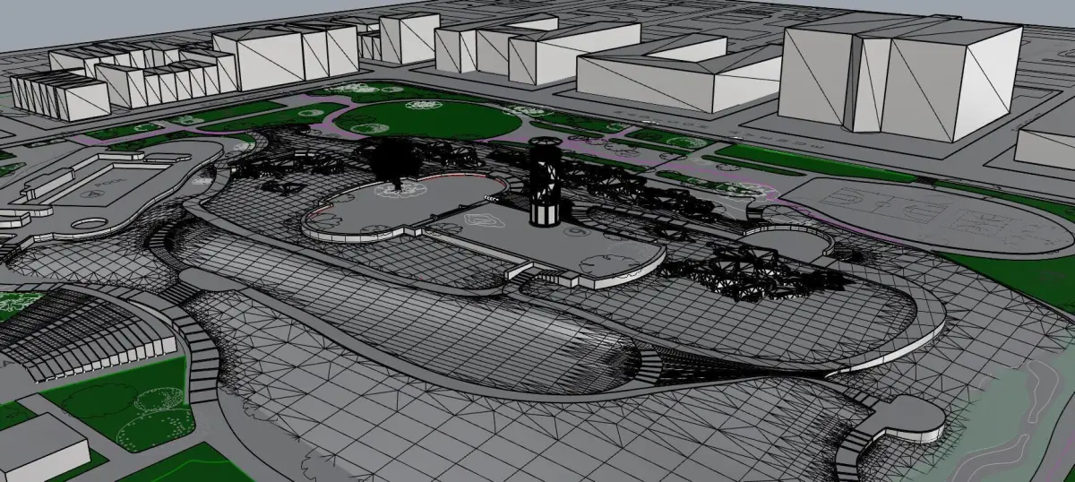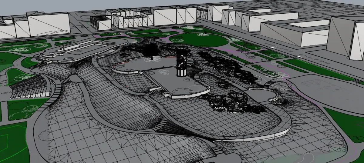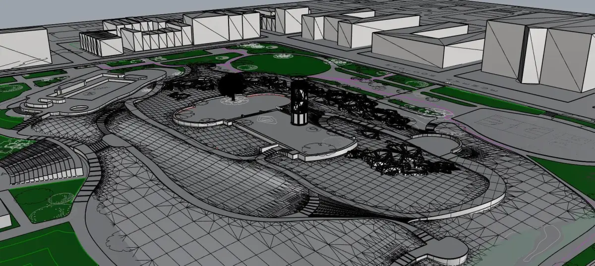 3D Model with Context of the Marcus Garvey Park. This model inclides the famous harlem watchtower and the context around the park. The model also has an approximate measurement of the compex topography of the park and a close depiction of its modeling