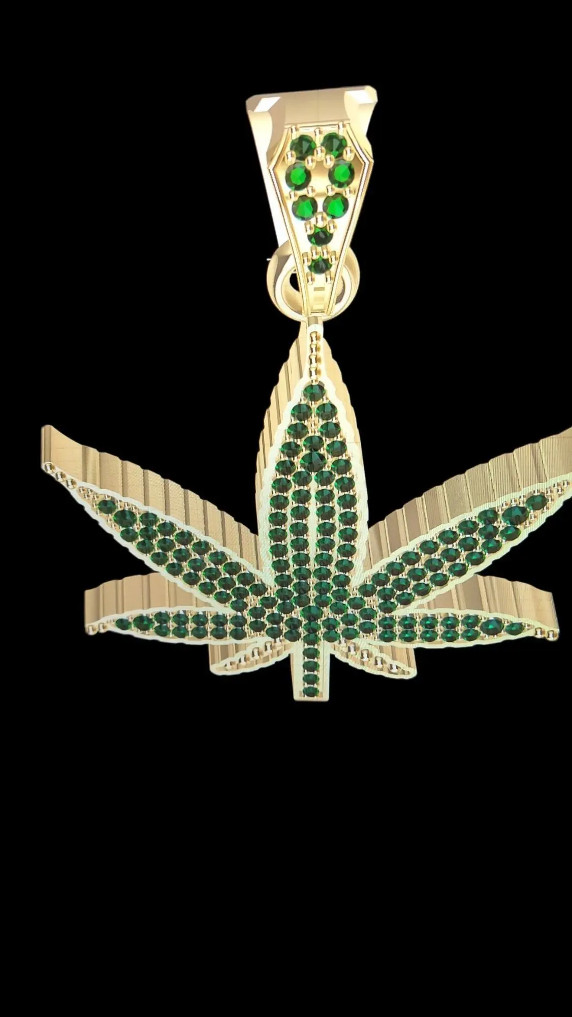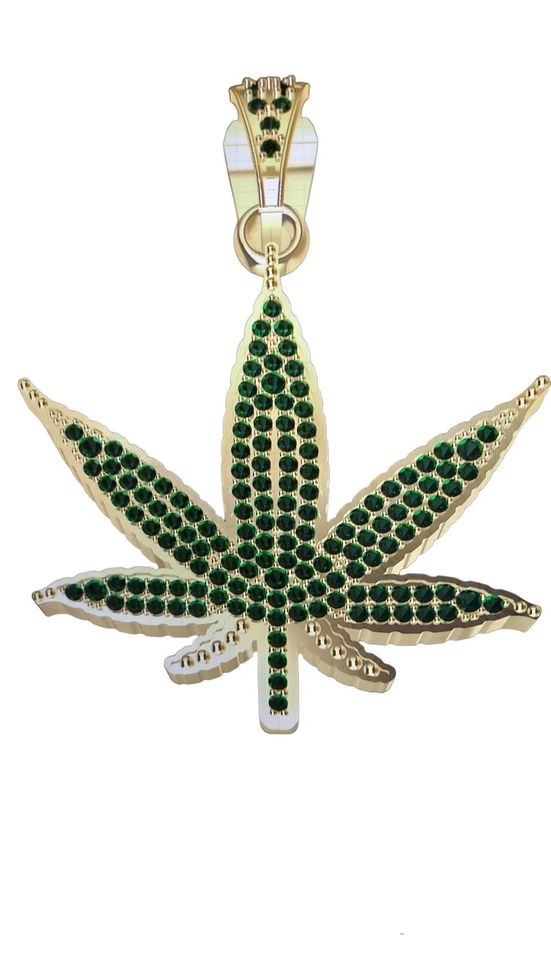 nice weed pendant for all you stoners out there! light one up with in style with this piece around your neck.Dimensions are in photoshas 145- 1.2 mm stones and 6 - 1.5 mm stones with a total Carat weight 1.39 ct weighs 15.6 grams in 14 yellow and 13.81 grams in 10 yellow14rose 15.83 grams and 10rose 13.84 grams14white 15.05 grams and 10white 13.22 grams