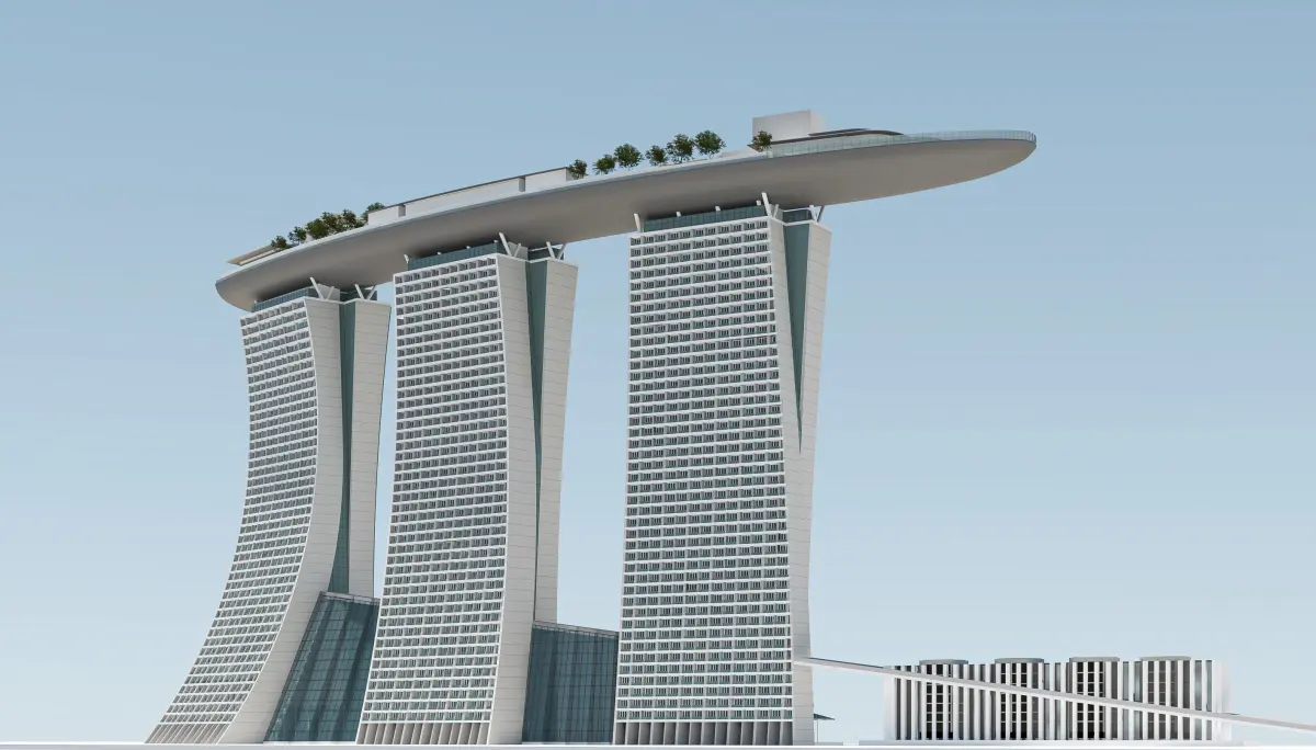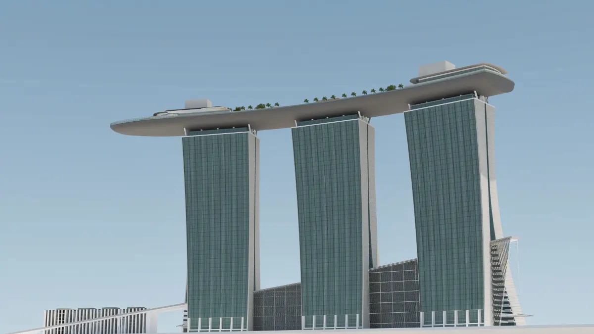 3D model of Marina Bay Sands Singapore building.The model is drawn at a very detailed and clean 1:1 scaleIt is modeled using sketchup, 3ds max,.. or you can export it to other software.Hope it is useful to you. Thank you for your support.