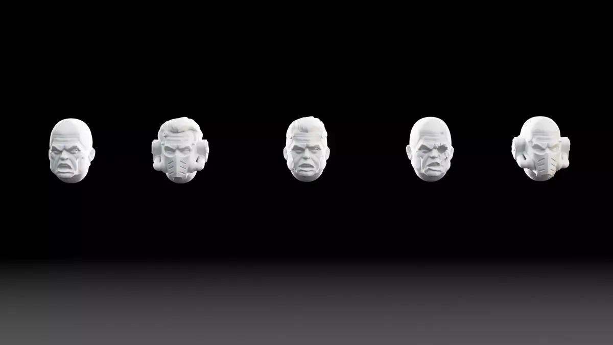 In total: 21 unique pieces — 6 arms, 6 heads, 5 pairs of legs, and 3 torsos.Each piece can be mirrored to create additional variants.Each character measures approximately 33mm tall.Scale to 1.1x to match the size of Primaris-style models.