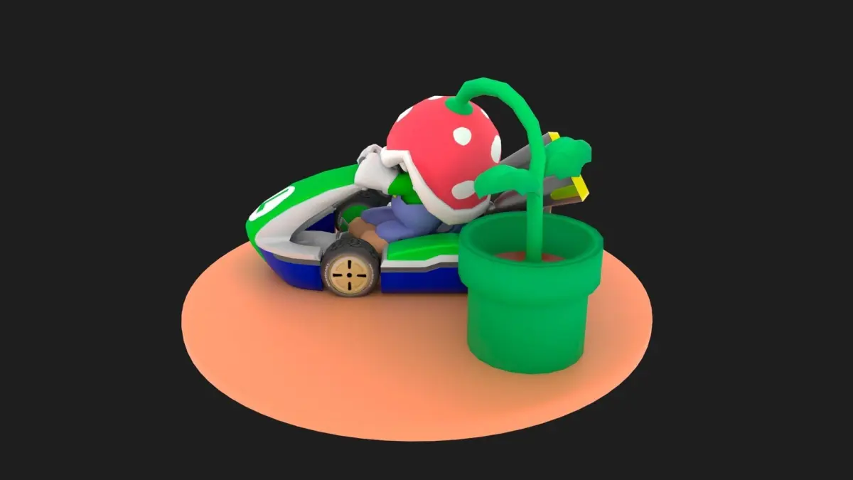 This is a Mario Kart 8 low poly Luigi kart with piranha plant 3D model. That will enhance detail to any of your rendering projects. The model has a fully textured and detailed design that allows for close-up renders, and was originally modeled,texturized in Autodesk Maya 2018 and rendered with Arnold. The model only have Uvs dones in piranha plant, car logo,and wheels… and it contains all the textures. It very cute model it is very colourful.