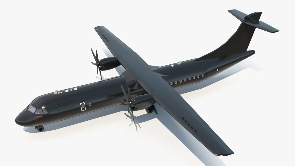 Maritime Patrol Aircraft with Twin Turboprops Black is a 3d model of a propeller-driven aircraft, showcasing a sleek and modern design often used for regional transportation and cargo purposes.