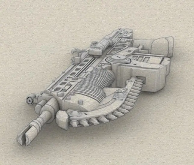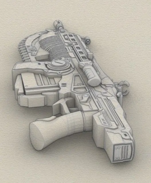 Here it is! The Mark 3 Assault Rifle from video game saga Gears of War.It is in perfect condition in a way to be easily printable and scalable.