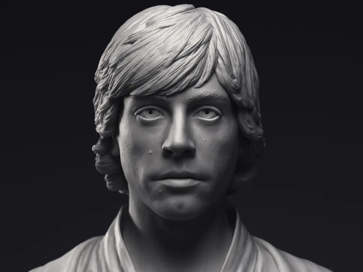 Highly detailed 3d printable bust of Mark Hamill in the role of the young Luke Skywalker as appear in `Star Wars: Episode IV – A New Hope´