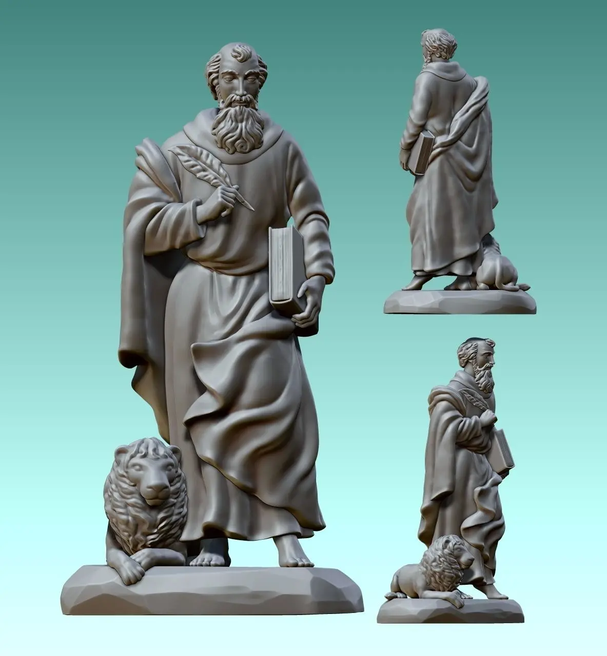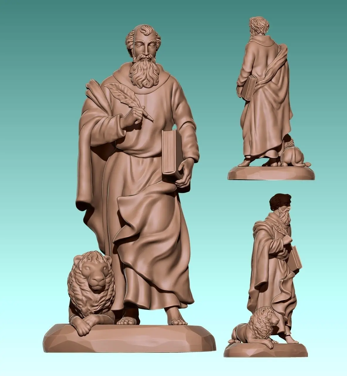 Work done in collaboration with a colleague for his carpentry. Originally designed for CNC Routing Machines. Based on classic designs of Catholic art., The model represents Marcos, one of the four evengelist. In the model I paying special attention to the wrinkles of the robe since the original stature is amazing, also in the lion, trying to maintain the style of the original. The file is ready for use, you can open it with Aspire or any CNC software.