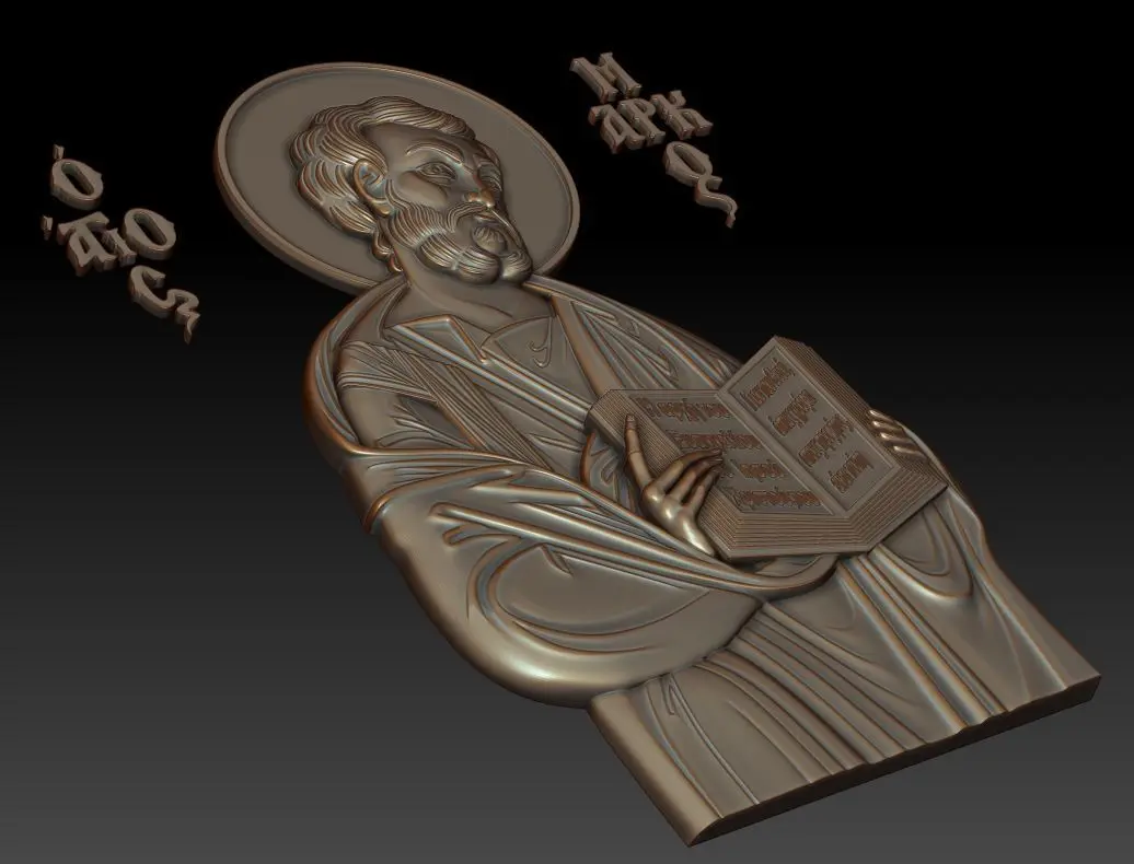 3d model Orthodox icon of Mark the Evangelist (Mark the Apostle, Apostle Markos). For milling on CNC machines. Can be used in the production of souvenirs, furniture, jewelry. Files in stl format, for import to artcam, rhinoceros, 3ds max, etc.